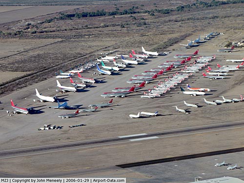 Pinal Airpark (IATA: MZJ, ICAO: KMZJ, FAA LID: MZJ) is a county-owned, public-use airport located seven nautical miles (13 km) northwest of the central business district of Marana, in Pinal County, Arizona, United States. Its main purpose is to act as a "boneyard" for civilian commercial aircraft. Old airplanes are stored there with the hope that the dry desert climate will prevent any form of corrosion in case the aircraft is pressed into service in the future. Even so, many aircraft which are brought there wind up being scrapped. Nearby the 309th Aerospace Maintenance and Regeneration Group at Davis-Monthan Air Force Base provides the same service to the U.S. military. The majority of the aircraft at Pinal Airpark formerly belonged to Northwest Airlines, though many other airlines are represented as well. HistoryBuilt in 1942 by the Sundt & Del Webb Construction Companies and opened in March, 1943, the facility was known as Marana Army Air Field. During World War II, the airfield was under the command of the 389th Army Air Force Base Unit, AAF West Coast Training Center and used as a training base, as part of the 50,000 Pilot Training Program. Marana conducted basic flight training & the training of transport pilots in instrument flying & navigation, being the home of the 3024th (Pilot School, Basic). Chinese pilots were also trained there. Five satellite airfields were established for Marana during WW2: Picacho Aux #1, Rillito Aux #2 (currently reused as Marana Northwest Regional Airport), Coronado Aux #3, Avra Aux #4, and Sahuaro Aux #5 (currently El Tiro Gliderport). The infrastructure installed at Marana during World War II was extensive. This included water, sewer, and gas systems that were still used until some problems developed in the 1990s. There was also a massive storm drain system. The airfield also had a railroad spur line & railroad station. Marana was closed after World War II and in 1948, Pinal County accepted a deed to the property, subsequent to the Air Force's disposal of most of the buildings, waterlines, gas lines, and electrical lines. From 1948-51, Pinal County leased the property to multiple tenants, and from 1951–56, Marana was reused as a contractor-operated USAF flying school, operated by Darr Aeronautical Technical Company. Marana became the headquarters of all Central Intelligence Agency air operations during the Vietnam War years, when it was the primary facility of Intermountain Airlines, a wholly owned CIA "front" company which was used to supply covert operations in Southeast Asia & elsewhere. Intermountain was infamous for its thinly veiled CIA special ops which included development & use of the Fulton Skyhook, but its cover was its non-scheduled freight & maintenance operations. Marana was the principal continental United States maintenance base for Southeast Asia CIA operations including Air America and Continental Air Services. Two of the more notable aircraft assigned to Marana during its CIA years was a Lockheed/Vega B-17G Flying Fortress, AAF Serial 44-85531. 531 was registered September 1957 to Western Enterprises, Inc. of Taiwan (founded by the CIA in 1951). In late 1957 missions were staged from Kurmitola Air Field in East Pakistan (now Bangladesh) to parachute agents into Tibet. The aircraft was disassembled for parts at Clark Air Base, Philippines between March and October 1958, and it is believed that this plane was eventually scrapped. The serial number 44-85531 appeared again as registered on another B-17G, September 1, 1960 registered to Atlantic General Enterprise, Washington DC (another CIA front) as N809Z. These registration numbers were then changed to the true numbers of 44-83785. Based again at Marana, this aircraft later flew black operations over Vietnam and was used to retrieve two American agents from an abandoned Soviet scientific base in the Arctic using the Fulton Skyhook in Operation Coldfeet. Current usagePinal Airpark is the home of Evergreen Aircraft Maintenance Facility and Silverbell Army Heliport (SAHP). The Western Army National Guard Aviation Training Site (WAATS) and other numerous National Guard units are located inside SAHP. The WAATS and is used principally for all ARNG AH-64 Apache Attack Helicopter training by the 'Gunfighter University'. It is also extensively used by the British Army for 'Conversion To Role' training for Apache combat operations in Afghanistan. Pinal Airpark also hosts the U.S. Special Operations Command's Parachute Training and Testing Facility. Facilities and aircraftPinal Airpark covers an area of 2,080 acres (842 ha) at an elevation of 1,893 feet (577 m) above mean sea level. It has one runway designated 12/30 with an asphalt surface measuring 6,849 by 150 feet (2,088 x 46 m). For the 12-month period ending January 31, 2004, the airport had 10,628 aircraft operations, an average of 29 per day: 69% general aviation and 31% military. The above content comes from Wikipedia and is published under free licenses – click here to read more.