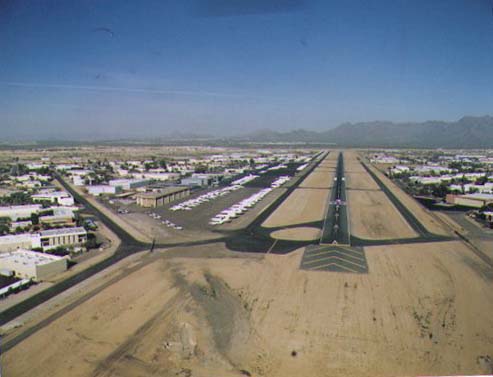 One of three Southwest Airways' training schools in the Valley, Thunderbird II's first class of cadets, arriving before the field was pronounced ready for occupancy, had to be trained at Thunderbird I in Glendale. Not until July 22, could all personnel, consisting then of 28 flight instructors, move to the Thunderbird II location in Scottsdale. Throughout World War II, Thunderbird II devoted its every facility to the training of more and more cadets. As war clouds thickened over Europe, the quota of men to be trained increased with virtually every class. In November 1943, the peak was reached; 615 cadets who flew an average of two hours a day, making 1,845 separate takeoffs and landings. In a period of ten weeks, students received a total of 65 hours of flight training and 109 hours of ground school. In spite of the intensified training, the field gained a widespread reputation for thoroughness of instruction and high caliber graduates. An increase in the number of students brought about a similar gain in the number of persons employed, until in January, 1944, Thunderbird II's payroll boasted 508 employees, with a total monthly salary expenditure of $115,247. Gradually the tempo slowed as World War II came to an end. So well did civilian contractors complete their initial assignment, that by August 4, 1944, only 40 of the original 64 primary schools were still in operation. At the closing of Thunderbird II, only 15 remained opened to complete the task of primary training. Thunderbird II's mission was accomplished - a great Air Force was built in far less time than anyone ever dreamed possible. After the war, Arizona State Teachers College (now Arizona State University in Tempe, Arizona), acquired the airport in order to implement its own aviation program. Distance from the college campus and cost of operating an aviation program soon convinced the college to abandon its plans. The Arizona Conference of Seventh Day Adventists purchased the Airport in 1953 and established Thunderbird Academy. Former barracks became dormitories. Hangars were adapted to house a wood products industry and a vocation education center offering training in mechanics, woodworking and welding. The airfield itself became a training field for missionary pilots. In 1963, in order to finance renovation of its physical facilities, the academy commissioned the first combined-use design of a clean industrial park surrounding an airport. The City of Scottsdale acquired the airfield portion of the academy's property in 1966 and has continued to own and operate it since that time. The first fixed base operator was selected in April 1967, and the first business jets landed at Scottsdale Airport in August 1967. The first airpark tenant, Casa Precision, broke ground for its first building unit in August 1968. By December 1969, 127 aircraft and 20 helicopters were based at Scottsdale Airport (SDL). In 2004, there were over 450 aircraft based at Scottsdale Airport, from single engine recreational planes to numerous corporate jets. Approximately 200,000 takeoffs and landings occurred, making Scottsdale the second busiest single-runway airport in the country, and the busiest corporate jet facility in the state. Scottsdale Airpark, the 2,600 acre commercial area which surrounds the Airport, has become a national model for airport-based business parks. This model has been achieved through the efforts of numerous City of Scottsdale civic and community leaders. Several important factors have contributed to the success of the Scottsdale Airport/Airpark - it is headquarters for over 25 national/regional corporations; home to more than 2,200 small to medium-sized businesses; workplace of more than 42,000 employees; and has easy airport access and seven miles of taxiway access. The workforce within its boundaries has tripled in the past decade, making it the second largest employment center in a community of approximately 212,000. One of the most significant aspects of Scottsdale Airport is the major economic stimulus that it provides to the City of Scottsdale and north Valley region. A recent study indicated that the airport generates more than $182 million annually in revenue to the region's economy and the combined annual impact of the airport/airpark is approximately $2.5-3.0 billion. The City of Scottsdale is known throughout the country as a community where quality of life and economic progress are synonymous. The outstanding facilities of the Airport and life and the amenities of the Scottsdale area have attracted a large number of businesses that desire to locate on or near the Airport. These same facilities and amenities draw general aviation and corporate business travelers from all over the country to visit Scottsdale for business and recreational purposes. As Scottsdale develops into one of the major markets of the Southwest, Scottsdale Airport plays a key role in linking the Scottsdale economy to the Southeast and the nation.