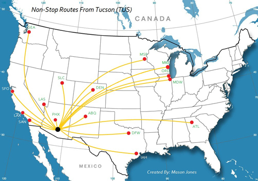 Southwest is currently Tucson's largest carrier offering 18 daily flights to 6 cities.