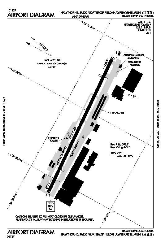 Jack Northrop Field/Hawthorne Municipal Airport covers 80 acres and has one runway: