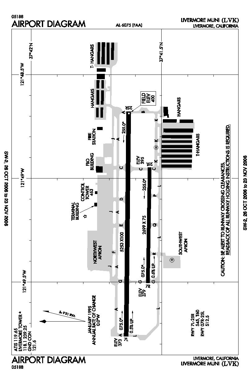 Livermore Municipal Airport (IATA: LVK, ICAO: KLVK) is located in Livermore, California, USA, east of the San Francisco Bay between San Jose and Oakland.