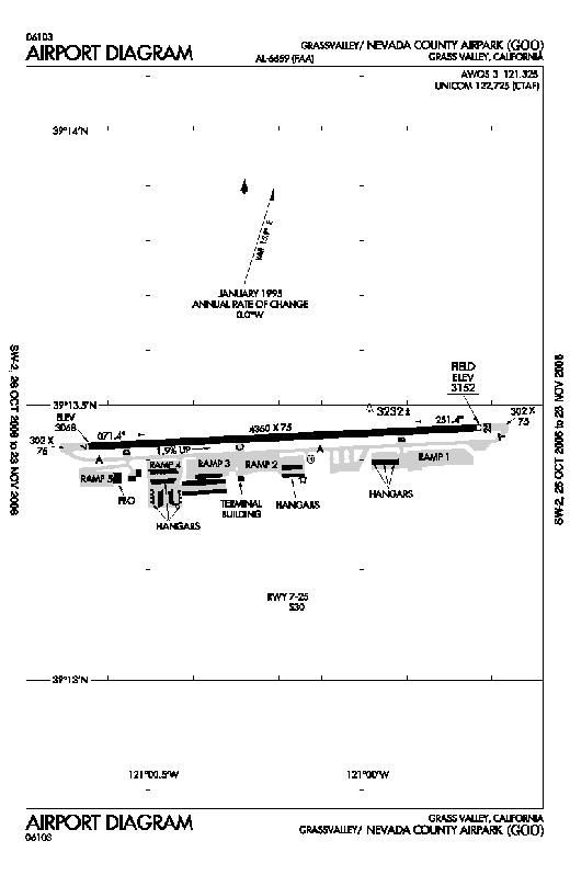 Nevada County Air Park (ICAO: KGOO, FAA LID: GOO, formerly O17) is a county-owned public use airport in Nevada County, California, United States. The airport is located three nautical miles (6 km) east of the central business district of Grass Valley, California. It is also known as Nevada County Airport.