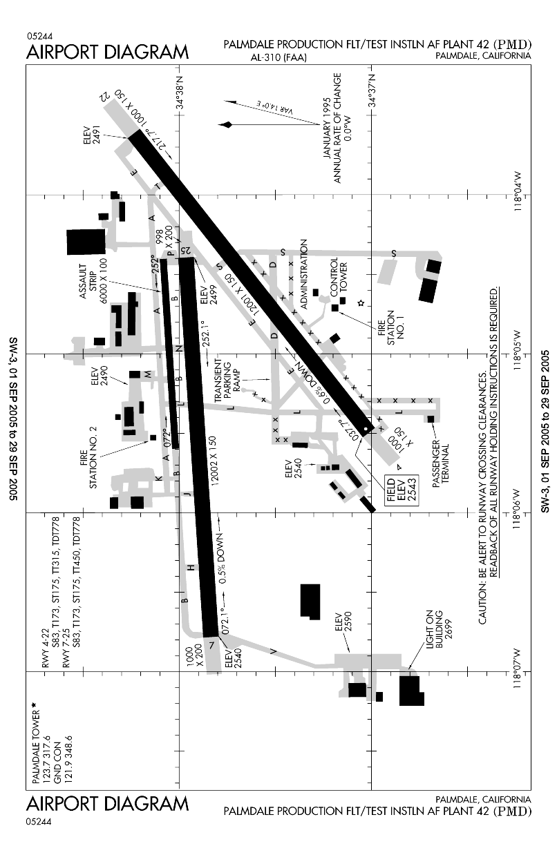 Palmdale Rgnl/usaf Plant 42 Airport Address: Los Angeles County, CA Tel: 661-272-6700, 661-272-6715 Images