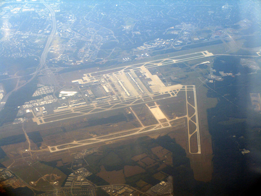 Coordinates: 38°56′40″N 077°27′21″W / 38.94444°N 77.45583°W Washington Dulles International Airport (IATA: IAD, ICAO: KIAD, FAA LID: IAD) is a public airport located 26 miles (41.6 km) west of the central business district of Washington, D.C., in Dulles, Virginia (Loudoun County and Fairfax County, Virginia, United States). It serves the greater Washington, D.C., metropolitan area. The airport is named after John Foster Dulles, United States Secretary of State under Dwight D. Eisenhower. The Dulles main terminal is a well-known landmark designed by Eero Saarinen. Dulles airport occupies 11,830 acres (47.9 km) of land, straddling the border of Fairfax County and Loudoun County, Virginia. It is located within two unincorporated communities, Chantilly and Dulles. The airport is west of Herndon and southwest of Sterling. Dulles airport is operated by the Metropolitan Washington Airports Authority. LayoutWashington Dulles International Airport is located within a 45-minute drive west of downtown Washington in the heart of the Northern Virginia region. It is accessible via the toll-free airport bypass of Route 267 by road and by Metrobus Route 5A by public transit. Washington Dulles is the Capital Region's largest airport, and is ranked as one of the nation's busiest airports; handling over 23 million passengers a year, and those numbers continue to grow. More than 60,000 passengers a day choose Washington Dulles as their point of access to over 125 destinations around the world. Washington Dulles also serves a growing number of airline passengers who use the airport for convenient and fast connections. The airport has five concourses, A, B, C, D, and Z, which are accessible via a courtesy interterminal rail service; known as the AeroTrain. All terminals are designed to handle domestic, international, and overseas flights. Concourse A is the base for Star Alliance member airlines, as well as other international airlines. Concourses B, C, D, and Z are the bases for more than 25 airlines around the world, including Delta, as well as most of the SkyTeam and Oneworld Alliance airlines. United Airlines, the dominant airline at Washington Dulles operates out of concourses A, C, and D. Service statisticsIn 2009, United Airlines maintains its East Coast hub at Dulles and handles 62% of passengers at the airport. JetBlue handles 6% of passengers, and American Airlines is the airport's third largest carrier in terms of tickets sold and handles 4%. The airport has 143 gates and 14 hard stand locations from which passengers can board or disembark using the airport's trademark PlaneMate airfield vehicles. On a typical day, Dulles sees 1,000 to 1,200 flight operations. History and backgroundOriginsAt the end of World War II, growth in aviation and in the Washington metropolitan area led Congress to pass the Washington Airport Act of 1950, providing federal backing for a second airport. After preliminary proposals failed, including one to establish an international airport at what is now Burke Lake Park, the current site was selected by President Dwight Eisenhower in 1958. As a result of the selection, the former unincorporated community of Willard, which once stood in the airport's current footprint, was torn down. Design and original constructionThe civil engineering firm Ammann and Whitney was named lead contractor. The airport was dedicated by President John F. Kennedy on November 17, 1962. Its original name, Dulles International Airport, was changed in 1984 to Washington Dulles International Airport. The main terminal was designed in 1958 by famed Finnish architect Eero Saarinen and it is highly regarded for its graceful beauty, suggestive of flight. In the 1990s, the main terminal at Dulles was reconfigured to allow more space between the front of the building and the ticket counters. Additions at both ends of the main terminal more than doubled the structure's length. The original terminal at Taiwan Taoyuan International Airport in Taipei, Taiwan was modeled after the Saarinen terminal at Dulles. The original design included a landscaped man-made lake to collect rainwater, a low-rise hotel, and a row of office buildings along the north side of the main parking lot. The design also included a two-level road in front of the terminal to separate arrival and departure traffic and a federally owned limited access highway connecting the terminal to the Capital Beltway (I-495) located approximately 17 miles (27 km) to the east. (Eventually, the highway system grew to include a parallel toll road to handle commuter traffic and an extension to connect to I-66). When the access road was designed, it featured a wide median strip to facilitate the construction of a passenger rail line, which is expected to be completed in 2016. Notable operations and milestones