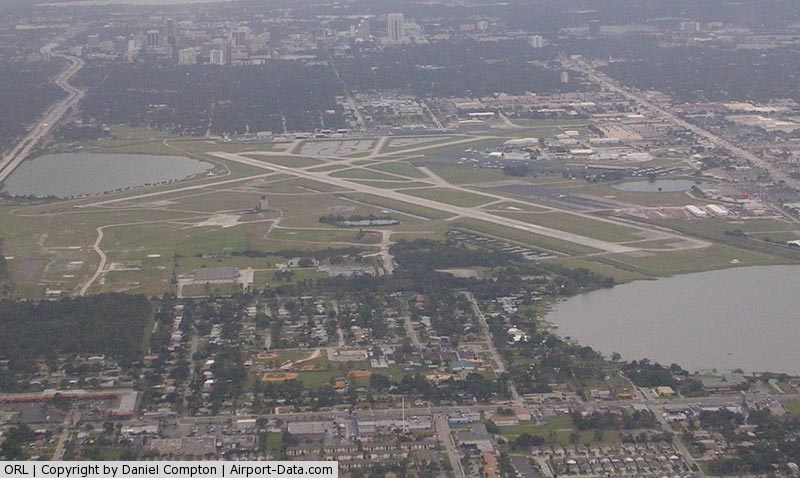 Orlando Executive Airport (IATA: ORL, ICAO: KORL, FAA LID: ORL) is a public-use airport located three nautical miles (6 km) east of the central business district of Orlando, a city in Orange County, Florida, United States. It is owned by the Greater Orlando Aviation Authority. It primarily serves the general aviation community. OverviewOrlando Executive Airport serves as a general aviation and corporate aviation airport for the greater Orlando area. Its proximity to the State Road 408 East-West Expressway as well as downtown Orlando makes it a popular airport for private business and pleasure travelers alike. However, the airport is still considered the "minor" airport of Orlando, Florida, as the Orlando International Airport remains the primary airport for both domestic and international flights, drawing significantly more passengers every year. The airport has been used for special air industry events and showcases included the National Business Aviation Association (NBAA) Convention which was held in 2008, and scheduled to be held again in 2009. The airport has also been used since the 1990s as a landing site and staging site by Marine Helicopter Squadron One (VMX-1) for Marine One and other supporting VMX-1 helicopter operations during Presidential visits to Orlando. However the primary arrival method for Presidential visits is still via Air Force One, which lands at Orlando International Airport (MCO). Facilities and aircraftExecutive Airport covers an area of 1,055 acres (427 ha) at an elevation of 113 feet (34 m) above mean sea level. It has two asphalt paved runways: 7/25 is 6,003 by 150 feet (1,830 x 46 m) and 13/31 is 4,638 by 100 feet (1,414 x 30 m). For the 12-month period ending December 31, 2001, the airport had 218,162 aircraft operations, an average of 597 per day: 94% general aviation, 5% air taxi and <1% military. At that time there were 242 aircraft based at this airport: 67% single-engine, 20% multi-engine, 9% jet and 5% helicopter. HistoryOpened in 1928 as the Orlando Municipal Airport, the airport was the first commercial airport in central Florida. The United States Postal Service started airmail service to Orlando the following year. The United States Army Air Corps took control of the airport in 1940 for use as a training facility and renamed it the Orlando Army Air Base. For the next six years, the airport remained under military control. In June 1941, the Army Air Corps became the United States Army Air Forces and beginning in late 1941 through mid-1943, Orlando Army Air Base was used by I Bomber Command and later by units of the Army Air Forces Antisubmarine Command (AAFAC) to fly antisubmarine patrols along both the east coast as well as over the Gulf of Mexico and the Florida Straits. With the lessening of the U-Boat threat, Orlando AAB became the home of the Army Air Force School of Applied Tactics (AAFSAT) and subsequently as the Army Air Forces Tactical Center (AAFTC). In 1943, the AAFSAT began training units in Night Fighter operations. the 481st Night Fighter Group was established, equipped with the Douglas P-70, a variation of the A-20 Havoc attack aircraft used for training. Squadrons attached to the group in 1943 and 1944 were the 348th, 349th, 420th, 423d, 425th, 426th and 427th Night Fighter Squadrons, which, after completion of training were sent overseas to either the Pacific or European Theaters for combat. In 1946, the airfield was released back to the city of Orlando, while the military support facilities to the north and northeast of the airport remained under US Army Air Forces control as a non-flying administrative and technical training installation. With the establishment of the United States Air Force as a separate service in 1947, this installation was renamed Orlando Air Force Base, serving as a technical training facility for the Air Training Command and Tactical Air Command, and as a headquarters installation for the Military Air Transport Service (later Military Airlift Command) and the Air Rescue Service. In 1968, the installation was transferred to the United States Navy and renamed Naval Training Center Orlando. The installation served as one of three Navy enlisted recruit training centers (boot camps) and as home to various technical training schools, to include the Navy Nuclear Power School for officer and enlisted personnel. The 1993 Base Realignment and Closure Commission (BRAC 1993) directed that NTC Orlando be closed no later than 1 October 1999. The base property was sold to the City of Orlando, which in turn sold it to private developers. Most of the installation was demolished and residential and commercial properties developed on the site, renamed Baldwin Park. In 1946, commercial service with National Airlines and Eastern Air Lines began at the now civilian Orlando Municipal Airport. Just five years later, the airport built its main terminal, a two-story structure with a built-in control tower. This terminal building stood until late 1999. In 1961 the airport was renamed again, this time called the Herndon Airport, the name change being in preparation for moving commercial air service to the new Orlando Jetport at McCoy that was collocated at McCoy AFB eight miles to the south, the facility which is known today as the Orlando International Airport. By 1968, commercial airlines no longer served Herndon and it became primarily a general aviation and corporate flight facility. In 1976, the City of Orlando gave up control of the airport and transferred the property, its former City of Orlando Aviation Department, and all operational responsibilities to the newly-established Greater Orlando Aviation Authority (GOAA), chartered by the Florida State Legislature to operate and manage all publicly-owned airports in Orange County, Florida. GOAA renamed the airport as Orlando Executive Airport in 1982 and renamed it again to its present name of Executive Airport in 1998. The above content comes from Wikipedia and is published und