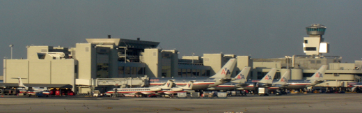 For the 12-month period ending April 30, 2009, the airport had 358,705 aircraft operations, an average of 982 per day: 82% scheduled commercial, 12% air taxi, 5% general aviation and <1% military. There are 28 aircraft based at this airport: 46% multi-engine and 54% jet. Fire protection at the airport is provided by Miami-Dade Fire Rescue Department Station 12. TerminalThe main terminal at MIA dates back to 1959, with several new additions. Semicircular in shape, the terminal has eight pier-shaped concourses, lettered counter-clockwise from A to J (B and C were demolished in 2005 and 2009, respectively; Letter I was skipped to avoid confusion with the number 1). From the terminal's opening until the mid-1970s, the concourses were originally numbered clockwise from 1 to 6. Level 1 of the terminal contains baggage carousels and ground transportation access. Level 2 contains ticketing/check-in, shopping and dining, and access to the concourses. The airport currently has two immigration and customs facilities, located in Concourse E, Level 1 and in Concourse J, Level 3. All gates in Concourses A, D, E, and J, most gates in Concourse F, and some gates in Concourse H, can route passengers to either the main concourse on Level 2 (for domestic arrivals), or to the immigration and customs halls on Level 3 (for international arrivals). However, all gates in Concourse G, most gates in Concourse H, and some gates in Concourse F are designed only for domestic arrivals. MIA is unique among American airports in that all of its facilities are common-use, meaning that they are assigned by the airport and no one airline holds ownership or leases on any terminal space or gates, thus giving the airport much more flexibility in terminal and gate assignments and allowing it to make full use of existing facilities. The entire airport became common-use by the 1990s. The airport is served by three parking facilities: a two-level short-term parking lot located directly in front of Concourse E, and two seven-story parking garages (Dolphin and Flamingo) located within the terminal's curvature and connected to the terminal via overhead walkways on Level 3. In the late 1990s, the Dolphin Garage was expanded to better serve the then-new Concourse A; it is expected that the Flamingo Garage will be similarly expanded in the near future to serve the new Concourse J. The two parking garages are connected at their westernmost end; at the top of this connection are the airport's SIDA and ID Section offices. The single terminal facility is divided into three sections known as the North Terminal, Central Terminal, and South Terminal. The North Terminal is presently undergoing a dramatic transformation, the largest ever undertaken on any operating airport. Concourses A, C, and D, which currently serve American Airlines and its regional affiliates, are being merged into a single linear concourse, to be designated Concourse D. Portions of the new North Terminal have already been built as extensions of Concourses A and D; to make space for the remaining portions, Concourse B was demolished in 2005, and Concourse C was demolished in 2009. Although this construction was originally slated for completion in 2005, it has been delayed several times due to cost overruns. The current substantial completion date is the third quarter of 2011. With sections of the terminal opening in phases, a significant majority of the structure has already been completed and opened for airline use. Once the entire project is finished, the North Terminal will house American Airlines and its oneworld alliance partners. Currently, American Airlines is spread between Concourses D, and E, while its alliance partners use either Concourse F or Concourse J. By Fall 2010, the North Terminal's new people mover, automated baggage handling system and regional jet facility will be operational, at which time Concourse A will reopen to become one Concourse D. The Central Terminal consists of Concourses E, F, and G. The Miami-Dade Aviation Authority expects to rebuild the central terminal following the completion of the north terminal, and intends to seek bids by the first quarter of 2011. Upon completion of the North Terminal project and the reopening, the Central Terminal will be used to house airlines not affiliated with any of the "big three" airline alliances as well as the low-cost carriers the airport hopes to attract. The South Terminal comprises Concourses H and J, the latter of which opened on August 29, 2007(photo). The new addition is seven stories tall and has 15 international-capable gates, and a total floor area of 1.3 million square feet (120,000 m), including two airline lounges and several offices. Concourse H will serve Delta Air Lines and its partners in the SkyTeam alliance, while Concourse J will serve United Airlines and its partners in the Star Alliance. Concourse AAt the time of its closure, Concourse A had one bus station and 16 gates: A3, A5, A7, A10, A12, A14, A16-A26 Concourse A is a recent addition to the airport, opening in two phases between 1995 and 1998. The concourse will eventually form part of the North Terminal. Between 1995 and 2007, the concourse housed many of American Airlines' domestic and international flights, as well as those of many European and Latin American carriers. American Airlines operated an Admirals Club in Concourse A; likewise British Airways ran a Terraces Lounge. Both lounges will return upon the reopening of the concourse. On November 9, 2007, Concourse A was temporarily closed as part of the North Terminal Development Project. It has been closed in order to speed up completion of the North Terminal project, as well as facilitate the addition of the Automated People Mover (APM) system that will span the length of the North Terminal. Concourse A reopened on July 20, 2010 as an extension of Concourse D, with gates numbered from D1 to D20. In the first quarter of 2011, it will regain its capacity to handle intern