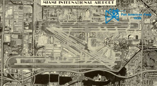 The airport was opened to flights in 1928 as Pan American Field, the operating base of Pan American Airways Corporation, on the north side of the modern airport property. After Pan Am acquired the New York, Rio, and Buenos Aires Line, it shifted most of its operations to the Dinner Key seaplane base, leaving Pan Am Field largely unused until Eastern Air Lines began flying there in 1934, followed by National Airlines in 1937. In 1945, the City of Miami established a Port Authority and raised bond revenue to purchase the airport, which had meanwhile been renamed 36th Street Airport, from Pan Am. It was merged with an adjoining Army airfield in 1949 and expanded further in 1951. The old terminal on 36th Street was closed in 1959 when the modern passenger terminal (since greatly expanded) opened for service. Air Force Reserve troop carrier and rescue squadrons also operated from Miami International from 1949 through 1959, when the last such unit relocated to nearby Homestead Air Force Base, now Homestead Air Reserve Base. Pan Am and Eastern remained Miami International Airport's main tenants until 1991, when both carriers went bankrupt. Their hubs at MIA were taken over by United Airlines and American Airlines, respectively. United slowly trimmed down its Miami operation through the 1990s, and eventually shut down its crew base and other operations facilities in Miami. At the same time, American expanded its presence at the airport, winning new routes to Latin America and transferring employees and equipment from its failed domestic hubs at Nashville and Raleigh-Durham. Today, Miami is American's largest air freight hub, and forms the main connecting point in the airline's north-south oriented international route network. For many years, the airport was a common connecting point for passengers traveling from Europe to Latin America. However, stricter visa requirements for aliens in transit (a result, in part, of the September 11, 2001 attacks) have lessened MIA's role as an intercontinental connecting hub. In 2004, Iberia Airlines ended its hub operation in Miami, opting instead to run more direct flights from Spain to Central America. Air France continues to run flights to Port-au-Prince using Airbus A320 aircraft. AeroSur, American Airlines, American Eagle, Gulfstream International Airlines, Sky King Airlines, TACA International Airlines, and Vision Airlines all operate regular flights between MIA and several airports in Cuba, one of a few airports with direct airlink between the two nations. However, these flights must be booked through agents with special authorization from the Office of Foreign Assets Control, and are only generally available to government officials, journalists, researchers, professionals attending conferences, or expatriates visiting Cuban family. OperationsThe budget for operations was $600 million in 2009. Facilities and aircraftMiami International Airport covers an area of 3,300 acres (1,335 ha) which contains four runways: