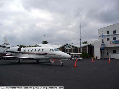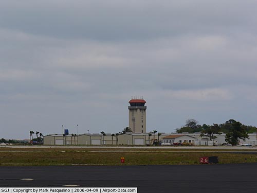 Northeast Florida Regional Airport (IATA: UST, ICAO: KSGJ, FAA LID: SGJ), formerly St. Augustine Airport, is a public airport located four miles (6 km) north of the central business district of St. Augustine, in St. Johns County, Florida, United States. It is publicly owned by St. Augustine - St. Johns County Airport Authority. The airport was left without commercial service after Skybus announced it would cease operations effective April 4, 2008. Although most U.S. airports use the same three-letter location identifier for the FAA and IATA, Northeast Florida Regional Airport is assigned SGJ by the FAA and UST by the IATA (which assigned SGJ to Sagarai, Papua New Guinea). The airport's ICAO identifier is KSGJ. HistoryOn December 27, 1933, the St. Augustine City Commission voted to purchase 276 acres in Araquay Park, north of the city, for $8,000 for conversion to a public airport. U.S. Government grants throughout the decade made possible additional improvements to the airfield. Following the outbreak of World War II in 1939, vast new sums were provided to upgrade the St. Augustine Airport with an eye toward its possible military use. After the 1941 attack on Pearl Harbor, civil aviation was cancelled and the U.S. Navy took over the airport, renaming it Naval Auxiliary Air Station St. Augustine. Used as a satellite gunnery base in connection with training operations at nearby Naval Air Station Jacksonville, significant improvements were made to NAAS St. Augustine, to include additional runway and hangar construction, support facilities and an operational control tower. Following the end of hostilities, the Navy began scaling back operations and in May 1946, St. Augustine Airport was returned to the city. In the postwar period, government subsidies made possible the establishment of "feeder airlines" providing air service to a host of smaller cities, with St. Augustine Airport becoming a scheduled stop for two passenger airlines. But with subsequnet cutbacks in government subsidies, the feeder airlines went out of business, and by 1950 the St. Augustine Airport, with weeds growing through the cracks in the runway, was seen as a "white elephant" the city could ill afford to operate. It was closed down and leased to the local Moose Lodge for $1.00 a year. However, it was not long, before the white elephant became a bonanza - a major factor in the industrial development of St. Augustine and St. Johns County. In June 1954, the Fairchild Engine and Airplane Corporation announced it would construct a large aircraft modification plant at the airport, opening the facility was the following year. Soon, military aircraft such as USAF and USMC C-119 Flying Boxcars and USAF and USCG C-123 Providers were arriving at Fairchild's St. Augustine facility for modification work. During the 1960s, C-119s would also be modified at the facility as AC-119 gunships and C-123s into aerial spraying aircraft for use in combat with U.S. Air Force units in Vietnam. Given the nature of the company’s work, airport facilities were expanded several times to meet the demand of Fairchild's requirements – the airport’s lengthening of Runway 13/31 to nearly 8,000 feet to accommodate military jet aircraft was a direct result of such needs. Fairchild also operated a Non-Federal Air Traffic Control Tower in the former Navy control tower on a periodic basis in support of military aircraft flight operations. In 1966, a terminal building and additional hangars were constructed to meet the needs of other users of the airport, while fixed base operations were established and additional land acquisitions executed. The economic impact of aviation on the St. Augustine community continued to remain significant until 1976, when Fairchild Industries announced that it would close down its St. Augustine operations. An industrial park was subsequently created at the former Fairchild facilities, and in 1980, the industrial park was sold to the Grumman Corporation for an aircraft modification plant that would ultimately service numerous front-line U.S. Navy and U.S. Marine Corps aircraft, to include the A-6 Intruder, EA-6B Prowler, C-1 Trader, C-2 Greyhound, E-2 Hawkeye and F-14 Tomcat. Grumman assumed responsibility for operating the air traffic control tower as required, maintaining emergency runway arresting gear systems for naval aircraft, and providing aircraft rescue and fire fighting capability for the airport. The Naval Air Systems Command also established Naval Plant Representative Office (NAVPRO) St. Augustine on site. In 1986 the airport was awarded Federal Aviation Regulations (FAR) Part 139 certification by the Federal Aviation Administration (FAA), enabling the airport to operate scheduled and charter airline aircraft carrying in excess of 35 passengers. This certification process increased airport safety and made the airport eligible to receive Federal grant money under the FAA's Airport Improvement Program (AIP). The airport was also designated as a "Reliever Airport" for general aviation overflow from Jacksonville International Airport. In the mid-1980s, Grumman St. Augustine was tasked with a major military contract for "re-winging" nearly all A-6 Intruder carrier-based medium attack bombers for the U.S. Navy and U.S. Marine Corps. In 1989, Grumman undertook large construction projects at the airport, to include construction of their "North 40" facility in support of a Federal Express Boeing 727 modification contract. Grumman, along with the Airport Authority, also built a facility to house the U.S. Coast Guard's E-2C Hawkeyes, which was named Coast Guard Air Station St. Augustine. At this point, the airport technically became a joint civil-military facility, while CGAS St. Augustine operated for two years with E-2C aircraft on loan from the Navy, patrolling along the eastern U.S. coast line, the Gulf of Mexico and throughout the Caribbean as part of drug interdiction operations. However, following a fatal aircraft mish