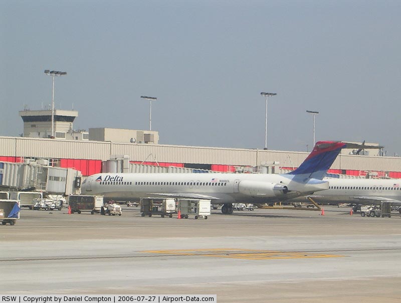 Along with the construction of the fifth runway, a new control tower was built to see the entire length of the runway. The new control tower is the tallest airport control tower in the United States, with a height of over 398 feet (121 m). The old control tower, 585 feet (178 m) away from the new control tower, was demolished August 5, 2006.