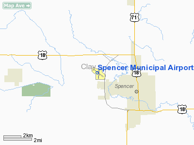 Spencer Municipal Airport covers an area of 812 acres (329 ha) which contains two concrete paved runways: 12/30 measuring 6,000 x 100 ft (1,829 x 30 m) and 18/36 measuring 5,100 x 75 ft (1,554 x 23 m).