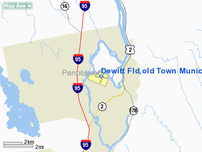 Old Town Municipal Airport and Seaplane Base (IATA: OLD, ICAO: KOLD, FAA LID: OLD), also known as Dewitt Field, is a public use airport located two nautical miles (4 km) northwest of the central business district of Old Town, in Penobscot County, Maine, United States. It is owned by the City of Old Town. The seaplane base is located on the Penobscot River.