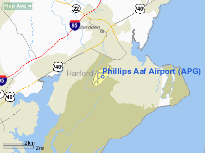 Phillips Army Airfield (IATA: APG, ICAO: KAPG, FAA LID: APG) is a military airport located at Aberdeen Proving Ground, in Harford County, Maryland, United States. This U.S. Army airfield has three asphalt paved runways: 4/22 is 7,997 by 200 feet (2,437 x 61 m), 8/26 is 4,849 by 149 feet (1,478 x 45 m) and 17/35 is 5,004 by 149 feet (1,525 x 45 m).