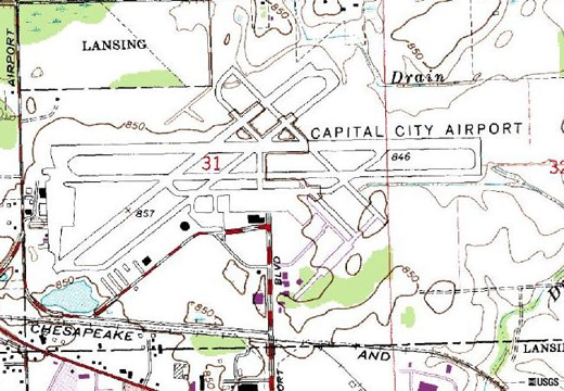 HistoryEarly 1900sThe first recorded flight in Lansing took place on October 15, 1911, at an old racecourse (now the Red Cedar Golf Course). More than 20,000 spectators watched pilot Jimmy Ward perform stunts in the Shooting Star, his Curtiss biplane. The dedication of Capital City Airport was held on the weekend of July 14 – 15, 1928, and attended by 70,000 people. A Stinson Detroiter plane arrived at the airport with Lansing's first air mail delivery on July 5, 1928. Mayor Laird J. Troyer, Chamber of Commerce President Alton J. Hager, and airport committee chairman Clyde B. Smith, among others, were present to witness the plane's arrival. Regular cargo service from Capital City Airport began on July 17, 1928, via Transamerican Airlines. That day pilot C.V. Pickup departed with five sacks of mail en route to New York City. Lansing postmaster Walter G. Rogers was among those present to witness the event. In 1929 J. D. Foster completed construction on a 60-by-120-foot, 7,200 square feet (669 m) aircraft hangar, the first building in what would become known as the Francis Aviation Complex at Capital City Airport. By the end of the year, fixed base operators Foster Airways, SKF Air Service, Inc., and Wolverine Flying Service, Ltd. had constructed hangars at the airport. Passenger service commenced on September 1, 1929, by Kohler Airlines. By 1934 Pennsylvania Airlines and Transport was providing air mail and passenger service to Detroit, Muskegon, Grand Rapids, and across Lake Michigan. The Foster Hangar housed a flight school operated by Harvey Hughes from 1934 to 1936. In the late 1930s, Lansing aviator, Lieutenant Arthur J. Davis, operated Michigan Airways, Inc. out of the hangar. During World War II, Francis Aviation and Hughes Flying Service provided ground and flight training to 300 pilots per month as part of the U.S. Government's Civilian Pilot Training Program and War Training Service. The training included three weeks of instruction at Michigan State College and continued at Capital City Airport. The airport's original terminal building was constructed in 1940. The same year, a 100-by-100-foot concrete hangar and an adjoining office wing were completed at the west end of the airport. In addition, the airport acquired 67 acres (27 ha) of land adjoining the north side of the airport and runway 6/24 was extended by 1,000 feet (305 m). Also in 1940 the airport unsuccessfully bid for an $8.4 million Aircraft Engine Research Laboratory of the National Advisory Committee on Aeronautics. 1950s-1970sIncreasing demand for air service led to the construction of the current terminal building in 1959. The terminal has undergone several renovations and additions since then. In April 1967 a new $38,000 observation room opened in the terminal. The room allowed viewers to hear radio communications between the airplane pilots and control tower through a loud speaker. In the early 1960s, Lansing Community College leased the Francis Aviation Complex at Capital City Airport. The college relocated to a new facility near the airport terminal in 1974. In 1970 Michigan Public Act 73 allowed the creation of the Capital Region Airport Authority, transferring jurisdiction of the airport from the State of Michigan to the Airport Authority. The airport's first surveillance radar was installed in 1973. By 1977 the approach lighting system and instrument landing system for runway 10R was activated. From 1978 to 1991 fixed base operator and aerial photography company White Star Photography purchased and operated from the Francis Aviation Complex. 1980s-1990sIn 1980 a 5,300 square feet (492 m) airport fire station was built. An air carrier terminal apron reconstruction followed in 1982. Between 1988 and 1990 runway 14/32 was decommissioned and became taxiway F. In January 1987 United Airlines announced that it was ending flights between Chicago O'Hare International Airport (ORD) and Lansing on April 5, after nearly 56 years of service. United Express, operated by Air Wisconsin, resumed the service to Chicago. During the 1990s, the Francis Aviation Complex was demolished for airport expansion and for compliance with FAA regulations. In 1992 a major renovation of the terminal building included the addition of 50,000 square feet (4,645 m) to the facility. The following year the public parking lot was reconstructed and a new airport surveillance radar (ASR-9) was activated. President Bill Clinton landed at the airport aboard Air Force One on July 22, 1999, to hold a forum on Medicare at Lansing Community College. 2000sFlight ReductionsDuring the 2000s, Capital Region International Airport has seen the number of daily flights reduced from 35 to 12. In May 2000 American Eagle Airlines discontinued its flights to Chicago-O'Hare, eliminating five daily flights and 23 positions at the Lansing airport. In October 2003 US Airways ended daily flights to its Pittsburgh hub. Continental Airlines suspended their daily flights to Cleveland effective January 2004. Chicago Express/ATA Connection Airlines ended service from Lansing to Chicago Midway International Airport (MDW) due to the airline's bankruptcy in March 2005. That same year Midwest Connect ended service to Milwaukee General Mitchell International Airport (MKE). In September 2007 Continental Airlines announced three daily flights from Lansing to the airline's hub in Cleveland to begin in May 2008; however, rising fuel costs and the delay of terminal expansion plans at Cleveland Hopkins International Airport (CLE) caused Continental to suspend these flights before they began. Delta Air Lines announced in July 2008 that it was ending its three daily non-stop flights (via Comair) from Lansing to Cincinnati/Northern Kentucky International Airport (CVG) effective September 1, eliminating 26 jobs at Lansing's airport. Delta also had offered non-stop flight from Lansing to Hartsfield-Jackson Atlanta International Airport (ATL) from 2005 to 2007. In August 2009 the airport ap