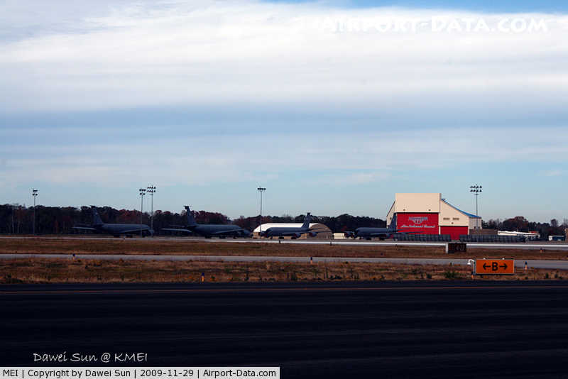 With the end of the war in September 1945, activities at Key Field were diminished. The airfield was returned to civil control in 1946, and allocated to the reconstituted Mississippi Air National Guard. Air National Guard useKey Field is currently home to the Mississippi Air National Guard's 186th Air Refueling Wing (186 ARW). Operationally gained by the Air Mobility Command (AMC), the 186 ARW operates a fleet of KC-135R Stratotanker aerial refueling and cargo aircraft. Key Field is also home to the Mississippi Army National Guard's 185th Army Aviation Support Facility, Company G. The 185th operates a fleet of CH-47 Chinook helicopters, a multi-purpose transport/cargo helicopter capable of carrying 55 troops and gear or can also sling-load up to 25,000 pounds. Navy T-45 Goshawk aircraft from nearby NAS Meridian and Air Force T-6A, T-1A and T-38C aircraft from Columbus AFB also frequently practice approaches and other procedures over Key Field. Aircraft Rescue and Firefighting (ARFF) capabilities are provided by the Air National Guard. Due to their mission as an air refueling wing, the ANG ARFF assets provide the entire airport with firefighting capabilities that will rival any airport in the Southeastern United States. In 2008, the 186 ARW entered into an arrangement with the active Air Force, hosting an operational training detachment for USAF-operated MC-12W aircraft under a program known as Project Liberty. The MC-12W is a USAF intelligence, surveillance and reconnaissance (ISR) platform and Air Combat Command (ACC) asset, which was fielded under an ambitious timeline in 2008 and 2009 to meet ground support ISR requirements in the U.S. Central Command (USCENTCOM) Area of Responsibility for Operations Enduring Freedom (OEF) and Iraqi Freedom (OIF). A derivative of the C-12 Huron, the MC-12W Liberty platform was created in response to Defense Secretary Robert Gates' initiative to better support warfighters on the ground with increased ISR in theater. USAF plans to procure 38 MC-12W aircraft. Mission qualification training in the MC-12W is currently conducted by a combined active Air Force and Air National Guard detachment embedded with the 186 ARW at Key Field. According to the 2005 BRAC Report, the 186 ARW is to be reassigned per recommendation #97, distributing its KC-135R aircraft between the Air National Guard's 101 ARW, 128 ARW, and 134 ARW, in Maine, Wisconsin, and Tennessee, respectively. The BRAC Report also states that the 186 ARW's aircraft rescue and firefighting (ARFF) positions are to be reassigned to the Mississippi Air National Guard's 172nd Airlift Wing (172 AW), an AMC-gained C-17 Globemaster III unit at Jackson International Airport. These transfers are to take place in 2010 and 2011, although the recent addition of the MC-12W Project Liberty program at Key Field may delay or eliminate the ARFF reassignment. In 2011, the same year that the 2005 BRAC realignments are to be completed, the 186th ARW is expecting to receive two new missions. According to Mississippi Governor Haley Barbour and State Adjutant General Harold Cross, these missions are to be a new Joint Cargo Aircraft mission and an Air Force War Fighting Headquarters. According to Tom Williams, CEO of Meridian Airport Authority, this will result in an increase in local jobs at Meridian's Air National Guard facility. Facilities and aircraftKey Field covers an area of 863 acres (349 ha) at an elevation of 297 feet (91 m) above mean sea level. It has two runways: 1/19 is 10,003 by 150 feet (3,049 x 46 m) with an asphalt/concrete surface and 4/22 is 4,599 by 150 feet (1,402 x 46 m) with an asphalt surface. The majority of the site is paved in asphalt, with a large parking area in front of the terminal. Only small areas around the buildings are unpaved, and landscaping is limited to the terminal, which has shrubbery and an ornamental tree. The old terminal building, hangar, and powerhouse at Key Field together form the earliest surviving airport complex in the state of Mississippi and were listed on the National Register of Historic Places in 2003. After being listed, the buildings were rehabilitated for use as a Cessna flight training school and repair shop. The old terminal building is a two-story brick building crowned with a gabled roof and parapeted end walls. Facing east toward Highway 11, the building is supported by a concrete foundation. The side wings and front pavilion of the terminal have flat parapeted roofs as well, and a gable-roofed porte-cochère extends from the front pavilion and terminates at a taller brick wall, in which is a large arched opening. The front pavilion has another arched opening that leads to a recessed entrance. A one-story polygonal porch dominates the rear facade, facing the airfield. Flanking the porch, there are arched openings in the side wings as well. The second floor has a central door that opens onto the porch roof, forming an observation deck overlooking the airfield. The interior of the building contains a waiting room with the former manager's office to the north and the baggage and mailroom to the south. All the walls in the building are plastered, and the floors are vinyl tile. A staircase leads to the second floor, which is a single room that originally housed the weather bureau. The rectangular hangar accommodates 10 planes, and is still in use today. The building is made of brick and has a concrete foundation. The roof is gabled, and the walls are parapeted. The end walls are capped by pent roofs and decorative brick panels framed by stucco. The north and south ends contain eight large sliding metal doors, which open to allow planes to roll in. The interior has a concrete floor, unfinished brick walls, and an unfinished ceiling with exposed steel trusses. There is a small office and washroom on the east end, and a staircase leads to a narrow second floor room that overlooks the workroom and hangar storage area. Located on the east side of the hangar, the Powerhou