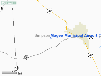 | From nearest city: | 3 nautical miles W of Magee, MS |