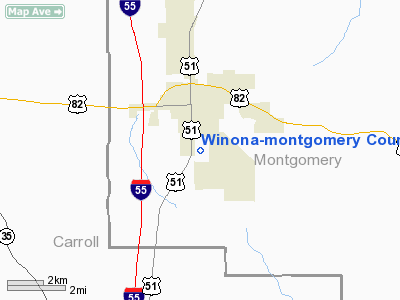 | From nearest city: | 1 nautical miles S of Winona, MS |
