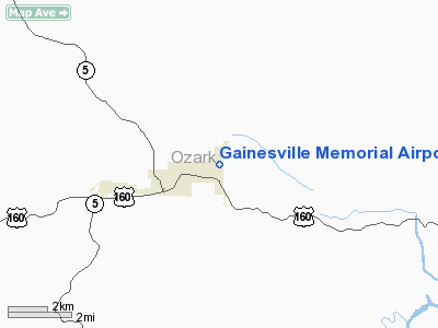 | From nearest city: | 2 nautical miles NE of Gainesville, MO |