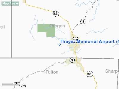 | From nearest city: | 2 nautical miles W of Thayer, MO |