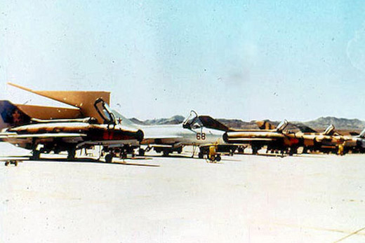 In addition, unconfirmed Soviet aircraft flown were MiG-25 Foxbat (YF-116); MiG-29 Fulcrum (YF-118) and Sukhoi Su-22 Fitter (YF-112). Aerial dogfights were staged between the various MiG models against virtually every fighter in US service, and against SAC’s B-52 Stratofortress and B-58 Hustlers to judge the ability of the bombers countermeasures systems, they performed radar cross-section and propulsion tests that contributed greatly to improvements in US aerial performance. All the models had quirks. The MiG-17 did not have an electric seat, so pilots had to use cushions to position themselves properly inside the cockpit. Both it and the MiG-21 had pneumatic brakes applied by squeezing a lever on the front of the stick. Many of the MiG-21s did not have steerable nose gears, making them difficult to taxi; the sign of a novice Fishbed pilot was the zigzag track he made while moving on the ground. If a pilot put the throttle back on a MiG-21, it would take a long time to spool up again when trying to accelerate. Thus many of those who flew it stayed on afterburners as much as possible. The MiG-23 did not have that problem, as it was designed for speed-but it was unstable and difficult to fly. None of the Soviet-designed aircraft at Tonopah flew in bad weather or at night. All were very short-legged, compared to contemporary US aircraft, and sorties were limited to 20 minutes or so. The MiGs had US airspeed indicators and a few other minor instrument and safety modifications. Other than that, they were stock-down to their Warsaw Pact paint jobs. The 4477th flew its last MiGs in 1990 and with the end of the Cold War was deactivated. In 2006, the Constant Peg program was declassified and the USAF held a series of press conferences about the former top secret US MiGs. It was revealed that the US MiGs flew more than 15,000 sorties and nearly 7,000 aircrew flew in training against dissimilar aggressors in the Nevada desert between 1980 and the end of the program in 1988. What was learned during these projects prompted the US Navy to commence Top Gun exercises first at NAS Miramar, California and then NAS Fallon, Nevada. Shortly thereafter the Air Force commenced its Red Flag exercises at Nellis AFB, Nevada. 1982-1992: F-117A DevelopmentBeginning in October 1979 Tonopah TR Airport was reconstructed and expanded. The 6,000 ft (1,829 m) runway was lengthened to 10,000 ft (3,048 m). Taxiways, a concrete apron, a large maintenance hangar, and a propane storage tank were added. Phase II of the expansion consisted of the construction of an extra taxiway, a new control tower, a 42,000-square-foot (3,900 m) hangar, a parts warehouse, a dining hall, a water storage tank, and extensive fuel storage tanks. Phase III expansion of the facility was a 2,000 ft (610 m) runway extension to a total length of 12,000 ft (3,658 m). Extensions were made to taxiways, the ramp, the runway gained arrester gear, and new navigation aids were installed. More fuel storage was provided, together with Liquid Oxygen (LOX) storage, a fire station, and the first 24 aircraft hangars. The cost was over $100 million. In May 1982, Tonopah Test Range became the home of the Air Force F-117 fleet. At the time the F-117 project was still highly classified, and Tonopah Test Range became a black project facility. Air Force personnel were shuttled from Las Vegas to TTR on contract Boeing 727 aircraft. The new F-117 fleet was considered for several high-profile military operations during the mid 1980s, but operations remained largely confined to nighttime flights around Nevada and California for a number of years. In November 1988 the Air Force formally acknowledged its F-117 activities at Tonopah, bringing what was a "black world" program into "gray world" status. However F-117 flight operations continued to be restricted to the nighttime hours. Late in 1989 the Air Force began preparations to lead the F-117 into regular Air Force operations. This would be done in two phases: first, bringing the aircraft under the umbrella of the Tactical Air Command, and second, locating the fleet at a regular Air Force base. The first phase came on October 5, 1989 when the 4450th Tactical Group was deactivated and the 37th Tactical Fighter Wing from George AFB was assigned to Tonopah. The Tactical Air Command (TAC) also activated the Det 1, 57 Fighter Weapons Wing (FWW) at Tonopah. During this phase, three pairs of F-117 aircraft left the TTR for Panama in December 1989 to participate in Operation JUST CAUSE. Only one mission with two F-117As was attempted. The second phase of real-world integration came in January 1990 with the announcement that the 37th TFW would move from Tonopah to Holloman AFB, New Mexico, which would ultimately be delayed due to the Gulf War. In April 1990, the F-117 was placed on public display at Nellis AFB and the Air Force mission at Tonopah Test Range became a mostly-unclassified "white world" program. Daytime F-117 flying operations began. Summer 1990 saw the peak of Air Force activity at the Tonopah Test Range Airport. After the Iraqi invasion of Kuwait the base was mobilized to support Desert Shield. On August 19, 1990, 22 F-117A's from the 415th and a dozen tankers left Tonopah for Langley AFB. A total of 18 F-117s would continue onward to Khamis Mushait Air Base in Saudi Arabia for Operation DESERT SHIELD, followed by hundreds of TTR support personnel. The planes and a contingent of Tonopah Test Range personnel remained in Saudi Arabia until late 1991. As a result of the deployment and the planned fleet relocation to New Mexico, flying operations and staffing at the TTR declined significantly after 1990. The official ceremony for the F-117A arrival at Holloman AFB came on May 9, 1992, setting into motion an exodus of Air Force activities at Tonopah. On June 1, 1992 Det 1, 57 FWW moved from Tonopah to Holloman AFB. On July 8, the 37th FW was inactivated and the 415th FS, 416th FS, and 417th FS had all become part of the 