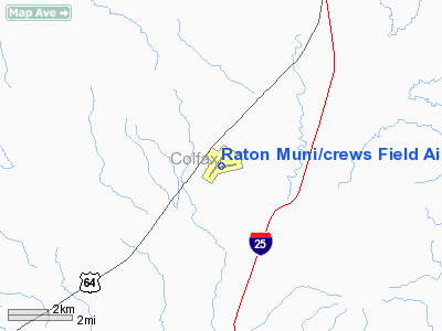 Raton Municipal Airport/Crews Field covers 1,208 acres (489 ha) and has two runways: