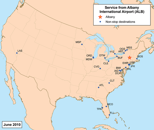 Airlines that served Albany after Deregulation include (but are not limited to):