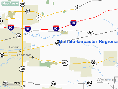 Buffalo-Lancaster Regional Airport covers an area of 100 acres (40 ha) at an elevation of 750 feet (229 m) above mean sea level. It has one asphalt paved runway designated 8/26 which measures 3,200 by 75 feet (975 x 23 m).