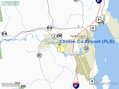 Clinton County Airport (IATA: PLB, ICAO: KPLB, FAA LID: PLB) is a public airport located in the Town of Plattsburgh, three miles (5 km) west of the central business district (CBD) of Plattsburgh, a city in Clinton County, New York, USA. It serves Plattsburgh and the western side of Lake Champlain. This county-owned airport covers 990 acres (401 ha) and has two runways.