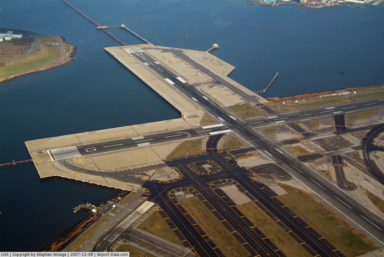 LaGuardia Airport (IATA: LGA, ICAO: KLGA, FAA LID: LGA) (pronounced /ləˈɡwɑrdiə/) is an airport located in the northern part of Queens County on Long Island in the City of New York. The airport is located on the waterfront of Flushing Bay and Bowery Bay, and borders the neighborhoods of Astoria, Jackson Heights and East Elmhurst. The airport was originally named Glenn H. Curtiss Airport after aviation pioneer Glenn Hammond Curtiss then renamed North Beach Airport, then later named for Fiorello H. La Guardia, a former mayor of New York when the airport was built. In 1960, it was voted the "greatest airport in the world" by the worldwide aviation community. The airport is operated by the Port Authority of New York and New Jersey. LaGuardia is the smallest of the New York metropolitan area's three primary commercial airports, the other two of which are John F. Kennedy International Airport in southern Queens and Newark Liberty International Airport in Newark, New Jersey, and the closest of the three to Manhattan. It is larger than nearby alternative airports Long Island MacArthur Airport in Suffolk County, Westchester County Airport in Westchester County, and Stewart International Airport in Newburgh, New York. LaGuardia is popular because of its central location and proximity to Manhattan. In spite of the airport's small size, wide-body aircraft once visited regularly; the McDonnell Douglas DC-10 and Lockheed L-1011 were specifically designed for use at LaGuardia. From 2000 to 2005, Delta operated the 767-400ER with 285 seats. Today, there are no scheduled widebody flights, though occasionally Delta Air Lines rotates a Boeing 767-300 in for one of its Atlanta flights. The airport serves as a focus city for AirTran Airways, American Airlines, American Eagle and US Airways Express Most flights from LaGuardia go to destinations within the US and Canada, as well as service to Aruba, the Bahamas and Bermuda, because those destinations are staffed with United States border preclearance facilities. The airport has INS/FIS facilities capable of processing customs and immigration on arriving international flights; the facilities are insufficient to handle efficiently the number of passengers that a non-precleared scheduled airline service would require. LaGuardia is the busiest airport in the US without any non-stop service to and from Europe. A perimeter rule prohibits incoming and outgoing flights that exceed 1,500 miles (2,400 km), excluding flights on Saturdays and flights to Denver, so most transcontinental and international flights use the area's other two major airports, JFK and Newark. In 2008, the airport handled 23.1 million passengers; JFK handled 47.8 million and Newark handled slightly more than 35.4 million, making for a total of approximately 106 million travelers using New York airports, which is the largest airport system in the United States, largest in the world in terms of flight operations, and second in the world (after London) in terms of passenger traffic. LaGuardia ranked last out of 66 airports in the United States in a passenger satisfaction survey compiled by J.D. Power and Associates. Out of 31 airports surveyed in 2009, LaGuardia, together with Newark Liberty International Airport, ranked last for on-time arrivals. HistoryConstruction