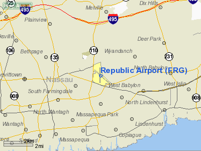 Republic Airport (IATA: FRG, ICAO: KFRG, FAA LID: FRG) is a state-owned public-use airport located in East Farmingdale, Suffolk County, New York, United States. The airport is on Long Island, one mile (2 km) east of the central business district of Farmingdale.