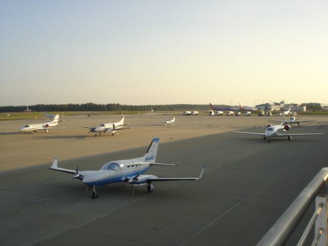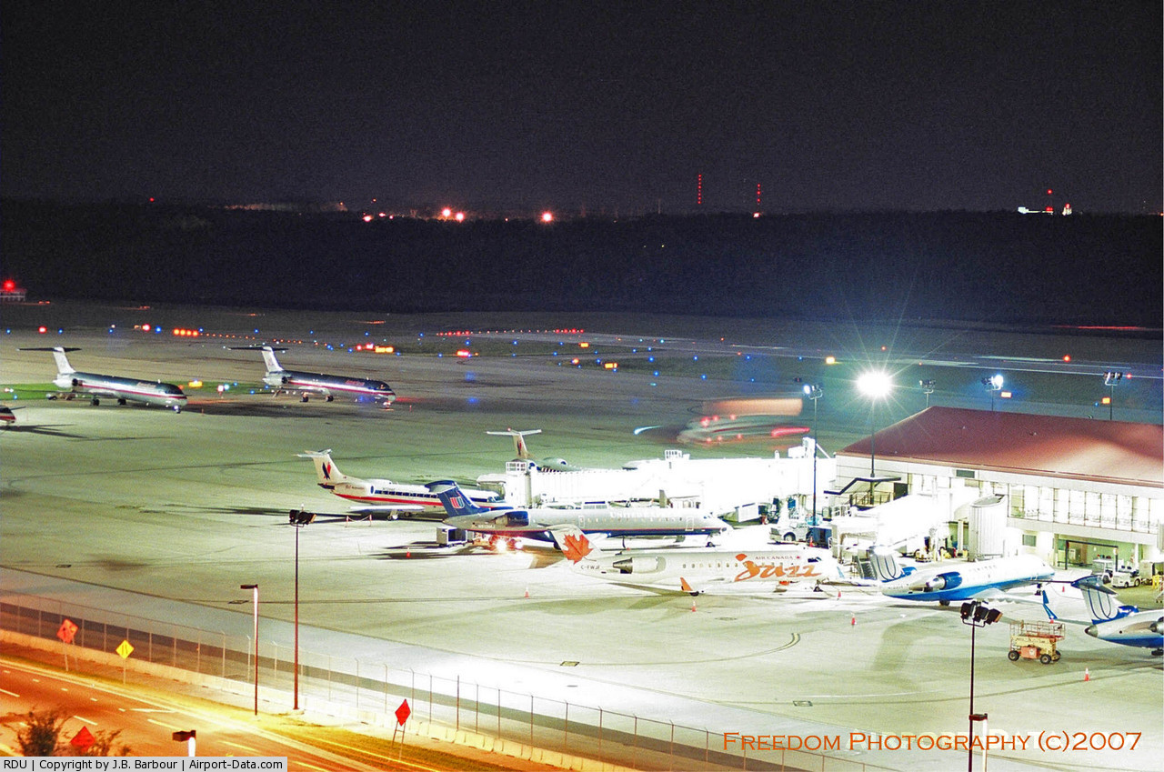 Raleigh-Durham International Airport (IATA: RDU, ICAO: KRDU, FAA LID: RDU) is a public international airport located nine statute miles (14 km) northeast of the town of Morrisville in suburban Wake County, North Carolina , United States.The airport covers 4,929 acres (1,995 ha) and operates three runways, providing direct service to 35 domestic and international destinations on 364 daily flights. In 2007, more than 10 million passengers traveled through the airport. The RDU Airport Authority is in charge of the airport facilities and its operations. The Airport Authority is controlled by a board of representatives from the counties of Wake and Durham, and the cities of Raleigh and Durham. HistoryEarly daysThe region's first airport opened in 1929 as Raleigh's municipal airport, located just south of what is now the city's downtown area. However the initial airfield's runways were limited and not well suited to commercial service. Consequently, in 1939 the North Carolina General Assembly chartered the Raleigh-Durham Aeronautical Authority to build and operate a larger, replacement airport convenient to both Raleigh and Durham. This effort also was strongly promoted by Eastern Air Lines, led by then Eastern chairman Eddie Rickenbacker who sought to make Raleigh/Durham a stopover on the airline's New York-Miami route. The new Raleigh-Durham airport opened for commercial service on May 1, 1943 inaugurated with flights by Eastern Airlines. The passenger terminal was built from materials remaining after the construction of four Army barracks for the site's use as an Army Air Forces Air Technical Service Command airfield. Following World War II, Capital Airlines and Piedmont Airlines joined Eastern at RDU. Delta Air Lines and Allegheny Airlines began service in the 1970s, and Trans World Airlines and American Airlines began service in the 1980s. American Airlines built a dedicated terminal at RDU between 1985 and 1987 to house a new hub operation. However, the RDU hub was operating at a loss even during its heyday in the early 1990s, along with AA's contemporaneous north-south hubs in Nashville International Airport and San Jose International Airport. The hub's traffic peaked in 1991 and operations were gradually downsized through 1995, with some services shifting to American Eagle turboprops and others (such as AA's nonstop flight to Orly Airport in Paris) terminated entirely. Midway Airlines replaced AA as the airport's hub carrier from 1995 until 2003. However, AA maintained a daily nonstop flight to London, originally launched to London (Gatwick) in May 1994 using a Boeing 767-200ER. (This flight has also used 777-200 or 767-300ER equipment.) Growth on the route continues today, partly due to the needs of the region's corporate travelers, particularly those of GlaxoSmithKline which has major bases of operation in west London and the Research Triangle region. On March 29, 2008, American Airlines upgraded its London flight to serve the larger and more centrally located Heathrow Airport. RDU's post-hub years have brought the addition of several new carriers (most notably Southwest Airlines), as well as new destinations and the recovery and steady growth of passenger traffic. Due to high fuel prices, AMR reduced the number of flights by cutting the flights to Jacksonville International Airport, Kansas City International Airport, Liberty International Airport and Louisville International Airport. Mainline flights to Austin-Bergstrom International Airport, Port Columbus International Airport, LaGuardia Airport and Lambert-St. Louis International Airport were also dropped. Other destinations saw reduced service or downgrade of service. Along with the American Airlines cuts, other airlines cut flights and destinations also. This included United's service to Denver International Airport and US Airways' services to McCarran International Airport and Sky Harbor International Airport, while other airlines dropped frequencies on routes. Independently, ExpressJet ended its services to Kansas City International Airport and Louis Armstrong New Orleans International Airport (ExpressJet now only operates flights under Continental Express). For the 2008 year, RDU lost over 30 flights compared to March 2008 schedule. In 2010, RDU's traffic has begun to recover from the downturn of the past two years. In the first few months of the year, passenger numbers stabilized at RDU, ending the decrease in 2008/2009. In the first four months of 2010, 2.7 million passengers traveled through RDU. Growth was flat, compared to the same period a year ago, but these signs are positive, indicating that the decline is over. Also, after cutting service, carriers at RDU began to add (or re-add) new service to the schedule. In April 2010, Midwest Airlines resumed service from RDU, adding service to General Mitchell International Airport. Southwest Airlines has also aggressively expanded at RDU, adding service to Lambert-St. Louis International Airport in May, and replacing American Airlines as the largest carrier at RDU. JetBlue Airlines also increased service to Logan International Airport in May 2010 and will add more flights to Boston, as will Delta, in winter 2010. Delta Air Lines has rapidly increased operations at the airport, restarting service to Los Angeles International Airport in June 2010 after a two-year hiatus. In November 2010, Delta will continue to expand service by offering flights to Port Columbus International Airport, Southwest Florida International Airport, Bradley International Airport, Miami International Airport, Orlando International Airport, Lambert-St. Louis International Airport, and Tampa International Airport. Additionally, service to Logan International Airport, Minneapolis-Saint Paul International Airport and John F. Kennedy International Airport will increase. Terminals, airlines and destinationsRaleigh-Durham international Airport consists of two terminals: Terminal 1 (gates A10-A28), featuring a 