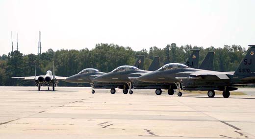 Seymour Johnson Air Force Base (IATA: GSB, ICAO: KGSB, FAA LID: GSB) is a United States Air Force base located within the city limits of Goldsboro, North Carolina. The base is named for Navy test pilot Seymour Johnson, a native of Goldsboro. It is home to the 4th Fighter Wing (4 FW) of the Air Combat Command (ACC) and the 916th Air Refueling Wing (916 ARW), an Air Force Reserve Command (AFRC) unit operationally gained by the Air Mobility Command (AMC). 4th Fighter WingThe 4th Fighter Wing, one of the Air Force's most distinguished fighter wings, moved to Seymour Johnson on December 8, 1957 from Chitose AB, Japan, replacing the 83d Fighter-Day Wing, and has been the host unit ever since. The 4th Fighter Wing, under various designations, can trace its origins to the RAF Eagle squadrons of World War II. The Eagle Squadrons were Royal Air Force fighter squadrons formed with volunteer pilots from the United States. The last Eagle Squadron was disbanded in September 1942, with most of the members transferring into the United States Army Air Force, primarily the 4th Fighter Group of the U.S. Eighth Air Force. Many famous fighter aces were in this group. Reactivated as the 4th Fighter Wing on July 28, 1947, members of the wing have served all over the world, including the Korean War, Vietnam War, Operation Desert Storm and Operation Iraqi Freedom. The 4th Fighter Wing accomplishes its training and operational missions with 92 F-15E Strike Eagles, assigned to the following squadrons: