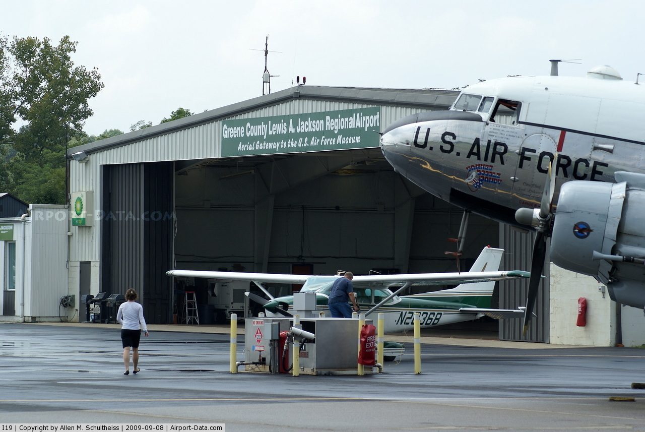 Greene County-Lewis A. Jackson Regional Airport covers an area of 180 acres (73 ha) at an elevation of 949 feet (289 m) above mean sea level. It has one runway designated 7/25 with a 4,500 by 75 ft (1,372 x 23 m) asphalt pavement.