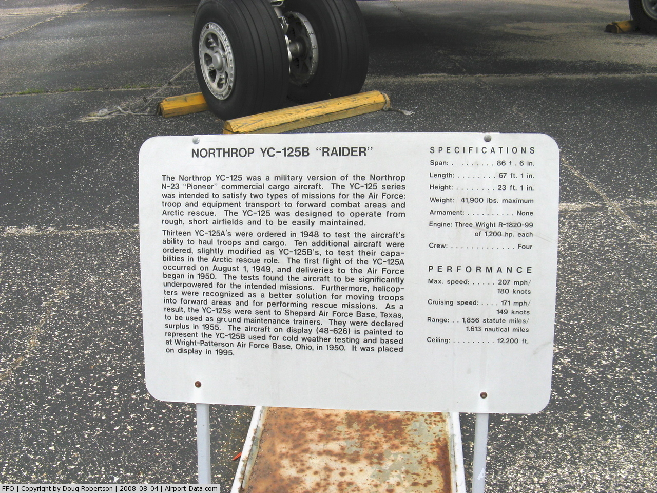 Wright-Patterson Air Force Base (AFB) (IATA: FFO, ICAO: KFFO, FAA LID: FFO) is a United States Air Force base in Greene and Montgomery counties in the U.S. state of Ohio. It includes both Wright and Patterson Fields, which were originally Wilbur Wright Field and Fairfield Aviation General Supply Depot. Patterson Field is located approximately 10 miles (16 km) northeast of Dayton; Wright Field is located approximately 5 miles (8.0 km) northeast of Dayton. The host unit at Wright-Patterson AFB is the 88th Air Base Wing (88 ABW), assigned to the Air Force Materiel Command Aeronautical Systems Center. The 88 ABW operates the airfield, maintains all infrastructure and provides security, communications, medical, legal, personnel, contracting, finance, transportation, air traffic control, weather forecasting, public affairs, recreation and chaplain services for more than 60 associate units. The base's origins begin with the establishment of Wilbur Wright Field on 22 May and McCook Field in November 1917, both established by the Army Air Service as World War I installations. McCook was used as a testing field and for aviation experiments. Wright was used as a flying field (renamed Patterson Field in 1931); Fairfield Aviation General Supply Depot; armorers’ school, and a temporary storage depot. McCook's functions were transferred to Wright Field when it was closed in October 1927. Wright-Patterson AFB was established in 1948 as a merger of Patterson and Wright Fields. The 88th Air Base Wing is commanded by Col. Amanda W. Gladney. Its Command Chief Master Sergeant is Chief Master Sergeant John L. Hoffman, Jr.. The Base had a total of 27,406 military, civilian and contract employees that work for the base in 2010. OverviewWright-Patterson AFB is "one of the largest, most diverse, and organizationally complex bases in the Air Force" with a long history of flight test spanning from the Wright Brothers into the Space Age. It is the headquarters of the Air Force Materiel Command, one of the major commands of the Air Force. "Wright-Patt" (as the base is colloquially called) is also the location of a major USAF Medical Center (hospital), the Air Force Institute of Technology, and the National Museum of the United States Air Force, formerly known as the U.S. Air Force Museum. It is also the home base of the 445th Airlift Wing of the Air Force Reserve Command, an Air Mobility Command-gained unit which flies the C-5 Galaxy heavy airlifter. Wright-Patterson is also the headquarters of the Aeronautical Systems Center and the Air Force Research Laboratory. Wright-Patterson is the host of the annual United States Air Force Marathon which occurs the weekend closest to the Air Force's anniversary. Major units
