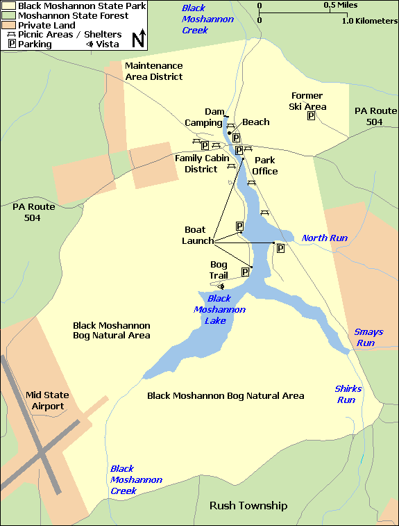 Location of Mid-State Regional Airport relative to Black Moshannon State Park |