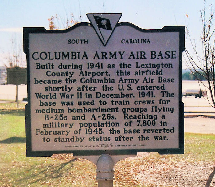 UPS Southeastern Regional HubIn August 1996, United Parcel Service opened an $80 million Southeastern Regional Hub at the airport. The hub offers next day, second day and third day air service. The buildings encompass 352,000 square feet (32,700 m) and the 44 acre ramp is large enough to hold 22 DC-8 aircraft. The hub can process 42,000 packages an hour. Other major air cargo companies serving the airport include ABX Air and FedEx Express. Facilities and aircraftColumbia Metropolitan Airport covers an area of 2,600 acres (1,052 ha) which contains two runways: 11/29 measuring 8,601 x 150 ft (2,622 x 46 m) and 5/23 measuring 8,001 x 150 ft (2,439 x 46 m). It also has a 50 x 50 ft (15 x 15 m) helipad. For the 12-month period ending December 31, 2006, the airport had 98,239 aircraft operations, an average of 269 per day: 47% air taxi, 38% general aviation, 11% scheduled commercial and 4% military. At that time there were 100 aircraft based at this airport: 60% single-engine, 25% multi-engine, 14% jet and 1% military. ServicesThe Airport hosts several services, including a gift shop, the Everett Adams Memorial chapel, a Columbia City Police precinct, restaurants and bars inside the terminal, and an eatery. Free wireless Internet service is provided throughout the airport as well as small number of recharge stations with access to outlets. HistoryThe airport was constructed in the 1940 as Lexington County Airport. In 1940 the United States Army Air Corps indicated a need for the airfield as part of the buildup of its forces after World War II began in Europe. The earliest recorded Air Corps use of the airport was when the 105th Observation Squadron began flying Douglas O-38 and North American O-47 light observation aircraft beginning on 24 September. In 1941, the airport came under formal military control and an immediate construction program began to turn the civil airport into a military airfield. Construction involved runways and airplane hangars, with three concrete runways, several taxiways and a large parking apron and a control tower. Several large hangars were also constructed. Buildings were ultimately utilitarian and quickly assembled. Most base buildings, not meant for long-term use, were constructed of temporary or semi-permanent materials. Although some hangars had steel frames and the occasional brick or tile brick building could be seen, most support buildings sat on concrete foundations but were of frame construction clad in little more than plywood and tar paper. While under construction, the 65th Observation Group used the unfinished facilities at the airfield between 1 September and 1 December 1941, flying a mixture O-47s, O-49 Vigilant and O-52 Owl light observation planes as part of the "Carolina Maneuvers" in the Fall of 1941 performing reconnaissance and aerial photo duties. On 8 December 1941, the Columbia Army Airbase was activated with Lt. Colonel Dashe W. Reeves as commander. It was assigned to Third Air Force, III Air Support Command. The 121st Observation Squadron was moved to the new air base from nearby Owens Field, replacing the 105th OS which was sent to Langley Field, Virginia and the Marine Corps airfield at Cherry Point North Carolina to fly antisubmarine patrols. The 121st OS, which had also been flying observation flights as part of the "Carolina Maneuvers", began antisubmarine patrols over the Atlantic coast using O-47s and L-4 Grasshoppers. The 96th Air Base Squadron was initially assigned as the base host unit for ground support squadrons, being replaced by the 19th Air Base Group in February 1942. The antisubmarine patrol mission was reassigned to Charleston AAF which was much better suited for it, as Charleston was located right on the Atlantic coast. Columbia Army Airfield's mission was changed become a training base for B-25 Mitchell medium bomber aircrews. In addition to the main facility, Columbia AAB had jurisdiction over several satellite and auxiliary airfields in support of the bomber training mission: