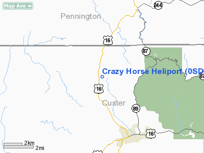 | From nearest city: | 4 nautical miles NW of Custer, SD |