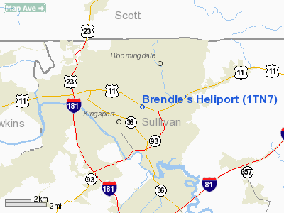 | From nearest city: | 0 nautical miles N of Kingsport, TN |