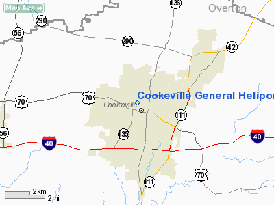 | From nearest city: | 0 nautical miles W of Cookeville, TN |