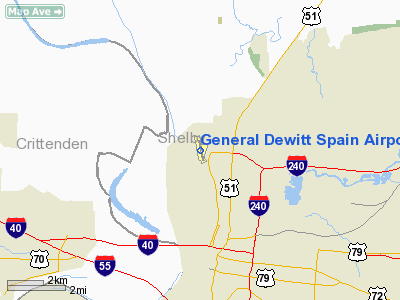 Coordinates: 35°12′02.5″N 090°03′14.3″W / 35.200694°N 90.053972°W General DeWitt Spain Airport (FAA LID: M01) is a civil, public airport located five miles (8 km) northwest of the central business district of Memphis, a city in Shelby County, Tennessee, United States. It is owned and operated by the Memphis - Shelby County Airport Authority. HistoryGeneral DeWitt Spain Airport began as an idea in 1928 when the Memphis Chamber of Commerce Engineering Committee suggested turning Mud Island into Memphis’ Airport. They decided against that location for a main airport and moved Memphis International Airport to its current location in South Memphis. However, the idea apparently did not fade. In 1959, Memphis Downtown Airport was put into service about where Mud Island Park is today to service the general aviation community. It had the slogan: “You’re strictly uptown when you land downtown.” A ferry boat took travelers from the Island to the cobblestones, and then it was just a short walk to the offices of Memphis’ city center. Private pilots who worked downtown and business travelers had the perfect arrangement. By 1961, 30 planes were landing per day, according to newspaper reports. By the mid 1960’s Interstate 40 was scheduled to cross the Island. Airport owners fought the I-40 Bridge, but in August, 1970, the last plane departed the island airport. Quickly the airport authority purchased available land just to the north of the island so downtown commuters could once again have their landing strip back. The following May, Memphis Downtown Airport was replaced by General DeWitt Spain Airport, honoring local war hero General DeWitt Spain who died in 1969. It has been and still is an active general aviation airport. Facilities and aircraftRunway 17/35 is a 3,800 x 75 ft. (1,158 x 23 m) asphalt runway. Its weight limitation for a single wheel is 25,000 lbs. The pattern for runway 17 is a right hand pattern due to some 649 ft. (AMSL) towers to the northeast of the field. General DeWitt Spain Airport is home to Downtown Aviation. Downtown Aviation is both a flight school that trains pilots from the private license level to the flight instructor license level and an aircraft rental service. They also have courses in learning aerobatics and flying tail-wheel airplanes. Downtown Aviation has a sizable fleet of Cessna aircraft. They also have two Piper Arrows, a Boeing Stearman, a Beechcraft Dutchess, and a Super Decathlon. Downtown Aviation provides both fuel service and extensive maintenance service to all aircraft on airport property. General DeWitt Spain Airport is home to Helicopters Inc, a Part 91 helicopter service. Helicopters Inc does aerial imaging, tours, pipeline/power line inspections, and video around the Mid-South. They operate one Enstrom F28A helicopter. General DeWitt Spain Airport does not have a control tower, but pilots operating out of the airport can receive radar service from Memphis International Airport. Airlines and destinationsNo regular service operates to or from General DeWitt Spain Airport. The above content comes from Wikipedia and is published under free licenses – click here to read more.