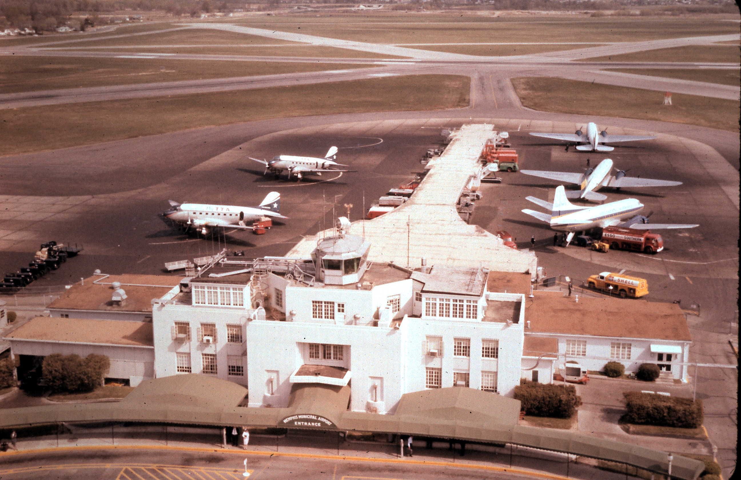 Memphis Municipal Airport, 1962, photographed from the then-new control tower. |