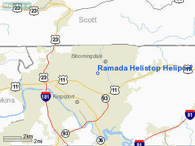 | From nearest city: | 0 nautical miles N of Kingsport, TN |