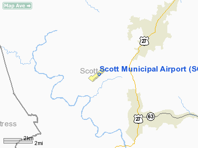 Scott Municipal Airport covers an area of 144 acres (58 ha) at an elevation of 1,545 feet (471 m) above mean sea level. It has one asphalt paved runway designated 5/23 which measures 5,502 by 75 feet (1,677 x 23 m).