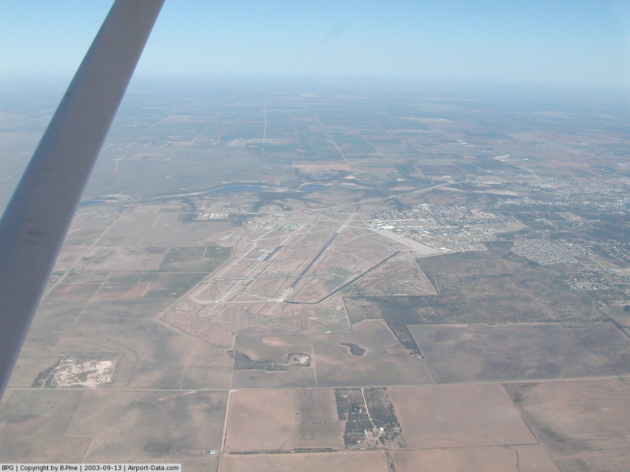 Big Spring McMahon-Wrinkle Airport (ICAO: KBPG, FAA LID: BPG) is a city-owned, public-use airport located two nautical miles (3.7 km) southwest of the central business district of Big Spring, a city in Howard County, Texas, United States. According to the FAA's National Plan of Integrated Airport Systems for 2009–2013, it is categorized as a general aviation airport. Although many U.S. airports use the same three-letter location identifier for the FAA and IATA, this airport is assigned BPG by the FAA but has no designation from the IATA (which assigned BPG to Barra do Garças Airport in Barra do Garças, Mato Grosso, Brazil). HistoryWorld War IIThe facility was first used by the United States Army Air Force as Big Spring Army Air Field, opening on 28 April 1942 as part of the Central Flying Training Command. The mission of Big Spring AAF was to train aviation cadets in high altitude precision bombing as bombardiers. The airfield had received its first class of cadets in September 1942. The AT-11 (Beechcraft Model 18 and the B-18 Bolo were the primary aircraft flown for training. The 79th Bombardier Training Group continued operations until the surrender of Japan, when the cadets who agreed to remain in postwar service were transferred to Midland AAF, Texas. The last class graduated on 26 September 1945. The base was declared surplus and reverted to city control in November 1945, and it served as the Big Spring Municipal Airport for six years. Webb Air Force BaseAs a result of the Korean War, and the need for trained pilots, the airfield was reopened on October 1, 1951. The base was renamed Webb Air Force Base in 1952 to memorialize Lt. James L. Webb, a Big Spring native and World War II combat pilot, who was killed off the Japanese coast in 1949. The 3560th Pilot Training Wing (later redesignated the Seventy-eighth Flying Training Wing) was stationed at the base, and instruction of the first class began in April 1952. The base population soon passed the 2,000 mark. By the end of 1968 almost 9,000 pilots had been trained at Webb. In 1956 the 331st Fighter Interceptor Squadron was transferred to Webb from Stewart Air Force Base in New York to defend the southern United States border on air intercept missions. In March 1967 the 331st was redesignated the 4760th Combat Crew Training Squadron and charged with training Jordanian Air Force students. It was inactivated when the Jordanians were recalled because of the war with Israel in the summer of 1967. Webb was also the site of annual summer training for ROTC (Reserve Officers' Training Corps) cadets throughout the 1950s and most of the 1960s. In 1977 the end of the Vietnam War meant a decrease in the need for Air Force pilots. Webb was formally deactivated, and the property it had occupied was turned over to the Big Spring Industrial Park. Facilities and aircraftBig Spring McMahon-Wrinkle Airport covers an area of 2,086 acres (844 ha) which contains two paved runways: 17/35 measuring 8,802 x 100 ft (2,683 x 30 m) and 6/24 measuring 4,601 x 75 ft (1,402 x 23 m). For the 12-month period ending January 30, 2009, the airport had 12,195 aircraft operations, an average of 33 per day: 91% general aviation and 9% military. At that time there were 48 aircraft based at this airport: 73% single-engine, 13% multi-engine, 6% jet, 6% ultralight and 2% helicopter. Other tenantsThree units of the Big Spring Correctional Center (a federal prison privately operated by Cornell Companies) are located on the base grounds (as well as FCI Big Spring, which is a separate facility operated directly by the Bureau of Prisons). The above content comes from Wikipedia and is published under free licenses – click here to read more.