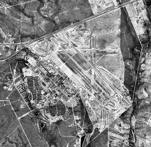 Laughlin Air Force Base (IATA: DLF, ICAO: KDLF, FAA LID: DLF) is a facility of the United States Air Force located five miles (8 km) east of the central business district (CBD) of Del Rio, Texas, close to the border of the United States with Mexico. It was named after Del Rio native Jack T. Laughlin. Laughlin AFB, the largest pilot training base in the USAF, is home to the 47th Flying Training Wing of the Air Education and Training Command (AETC). On weekdays, the airfield sees more takeoffs and landings than any other airport in the country. The residential area of the base is a census-designated place (CDP), with a population of 2,225 at the 2000 census. HistoryLaughlin AFB was originally named Laughlin Army Air Field on March 3, 1943, after Jack T. Laughlin, a B-17 Flying Fortress navigator who became Del Rio's first WWII casualty when his plane was shot down over Java in January 1942. The field became simply Laughlin Field on November 11, 1943 and later an Army Air Force Auxiliary Field. It was closed in October 1945. Laughlin Air Force Base reopened on May 1, 1952. In October 1952, ATC transferred the base to Crew Training Air Force (CREWTAF) and activated the 3645th Flying Training Wing (Fighter), as a combat crew replacement training facility for pilots headed for Korea. Training provided new pilots with basic bombing and gunnery combat skills in the F-80 Shooting Star, F-84 Thunderjet, and T-33 jet aircraft, but within a short time crews used only the T-33. In Sept. 1955, Laughlin came under the control of the Flying Training Air Force and switched missions with Williams Air Force Base, Arizona. Laughlin undertook single-engine pilot training, still using the T-33. The Air Force transferred jurisdiction of the base to the Strategic Air Command on April 1, 1957 and the 4080th Strategic Reconnaissance Wing (Light) moved there from Turner Air Force Base, Georgia. Following graduation of the last class in March 1957, ATC inactivated the 3645th FTW. The 4080th Wing provided high-altitude reconnaissance and air sampling using the Lockheed U-2A and the RB-57D Canberra. The 4080th Strategic Reconnaissance Wing was redesignated the 4080th Strategic Wing on June 15, 1960, and the RB-57 mission was phased out. Laughlin U-2s were among the first to provide photographic evidence of Soviet missile installations in Cuba in 1962 when 4080th U-2 pilot Major Steve Heyser flew his U-2C over Cuba after taking off from Edwards AFB, California. Heyser landed at McCoy AFB, Florida, following the mission, with McCoy becoming a U-2 operating location for the duration of the Cuban Missile Crisis. The film from Major Heyser's mission was developed and analyzed and these same photos were shown to the United Nations Security Council on October 22, 1962, proving to the world that offensive missiles were being erected on the island of Cuba. Another 4080th pilot, Major Rudolf Anderson, Jr., perished when his U-2 was hit by shrapnel from a Soviet-made SA-2 on October 22, 1962 while overflying Cuba. While not suffering a direct hit, Anderson was struck by fragments from the missile warhead's proximity explosion that penetrated and compromised his pressure suit. His body was returned to the U.S. following the crisis, still clad in its pressure suit. Major Anderson posthumously became the first recipient of the Air Force Cross, the Air Force's second highest decoration for valor. Laughlin's primary operations training complex, Anderson Hall, is named in his honor. In 1961, Headquarters US Air Force notified Laughlin officials their mission would expand to again include an Air Training Command undergraduate pilot training program. Plans called to transfer in about half the student load from Laredo Air Force Base, Texas. ATC reactivated the 3645th Pilot Training Wing (later redesignated 3646th Pilot Training Wing) at Laughlin in October 1961 to prepare for the phase-in of students and T-37 and T-33 trainers. The 4080th SW continued at Laughlin as a tenant organization until 1963. Today, aircraft flown at Laughlin include the T-6A Texan II, the T-38C Talon and T-1A Jayhawk. Fifteen classes of approximately 20-25 pilots each are graduated every year. Local entertainmentAside from the reservoir outside of Del Rio for fishing and some lake diving, most forms of recreation are either in the town of Del Rio or across the border in Ciudad Acuña. GeographyLaughlin Air Force Base is located at 29°20′52″N 100°47′18″W / 29.34778°N 100.78833°W. According to the United States Census Bureau, the base has a total area of 5.9 square miles (15.3 km), all of it land. DemographicsAs of the census of 2000, there were 2,225 people, 651 households, and 570 families residing on the base. The population density was 377.6 people per square mile (145.9/km). There were 664 housing units at an average density of 112.7/sq mi (43.5/km). The racial makeup of the base was 78.38% White, 10.65% African American, 0.27% Native American, 2.74% Asian, 0.09% Pacific Islander, 4.49% from other races, and 3.37% from two or more races. Hispanic or Latino of any race were 12.31% of the population. There were 651 households out of which 56.1% had children under the age of 18 living with them, 82.8% were married couples living together, 3.4% had a female householder with no husband present, and 12.3% were non-families. 6.6% of all households were made up of individuals and none had someone living alone who was 65 years of age or older. The average household size was 3.00 and the average family size was 3.18. On the base the population was spread out with 30.6% under the age of 18, 23.6% from 18 to 24, 42.7% from 25 to 44, 2.5% from 45 to 64, and 0.6% who were 65 years of age or older. The median age was 24 years. For every 100 females there were 130.1 males. For every 100 females age 18 and over, there were 136.4 males. The median income for a household on the base was $38,625, and the median income for a family was $38,625. Males had a median inco