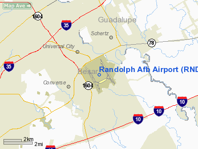 Randolph Air Force Base building 100, nicknamed the Taj Mahal. Randolph Air Force Base (Randolph AFB) is a base of the United States Air Force located in Universal City, Texas, near San Antonio. Dedicated June 20, 1930, as a flying training base, it continues with that mission today. The base is named after Captain William Millican Randolph, a native of Austin, who was on the base naming committee at the time of his death in a crash. It serves as headquarters of the Air Education and Training Command (AETC) as well as the Air Force Personnel Center (AFPC) and is known as "the Showplace of the Air Force" because of the Spanish Colonial Revival Style architecture in which all structures including hangars were constructed. The symbol of the base is a large water tower atop Building 100, housing the headquarters for Randolph's major flying unit, the 12th Flying Training Wing (12 FTW). With its distinctive architecture, the wing's headquarters has come to be known throughout the Air Force as "the Taj Mahal," or simply "The Taj". Another AETC unit, the 502d Air Base Wing (502 ABW) is the host wing for Randolph. A recently established organization, the 502 ABW assumed host wing duties from the 12 FTW, allowing the latter to concentrate on flight operations and training. Randolph AFB operates parallel runways on either side of its main installation facilities and conducts 24-hour-a-day flight training operations. Tenant units of Randolph AFB also include the Air Force Personnel Center (AFPC), Air Force Manpower Agency, Air Force Office of Special Investigations Field Investigations Region 4 and the Air Force Recruiting Service. HistoryEarly historyThe idea for Randolph began soon after passage in the United States Congress of the Air Corps Act of 1926, which changed the name of the Army Air Service to the Army Air Corps, created two new brigadier general positions and provided a five-year expansion program for the under-strength Air Corps. One of the new general officer positions was given to Frank P. Lahm, who was placed in charge of all flying training. General Lahm established the Air Corps Training Center and set up its headquarters at Duncan Field, next to Kelly Field, Texas. He soon learned that the facilities at Kelly and Brooks Fields were not sufficient for proper training. The buildings, erected during World War I with a life expectancy of five years, had no suitable areas for ground training, and the living quarters were inadequate. San Antonio's rapid growth was also beginning to interfere with flying training operations. The Air Corps soon decided that an additional training field was needed, and a site north of San Antonio was chosen for the new field. In 1926 and 1927, 1st Lt Harold Clark designed Randolph while assigned as dispatch officer in the Kelly Field motor pool, although the War Department received the land in 1928. Having trained as an architect prior to entering the military, Lieutenant Clark sketched his ideas of a perfect "Air City" on the back of old dispatch sheets. After learning a new field was to be built, Lieutenant Clark took his drawings to General Lahm, who was so impressed with the designs he appointed him to be the architect in charge of the Randolph Field project. It was, at the time, the largest construction project undertaken by the U.S. Army Corps of Engineers since the Panama Canal. Once the site for the field was selected, a committee decided to name the base after Captain William Millican Randolph, a native of Austin and graduate of Texas A&M, who was killed on February 17, 1928, in the crash of an AT-4 on takeoff from Gorman Field, Texas. Ironically, Captain Randolph was serving on the committee to select a name for the new field at the time of his death. Captain Randolph is buried at Fort Sam Houston National Cemetery. Randolph Field was dedicated June 20, 1930, with an estimated 15,000 people in attendance and a fly-by of 233 planes, possibly the largest assembly of military aircraft in the world. Early in 1931, the School of Aviation Medicine from Brooks Field and the first cadets from the Air Corps Flying School at Duncan Field, then a part of Kelly AFB, began relocating to Randolph. By the autumn of 1931, Randolph was ready for business. On October 1, the Air Corps Training Center moved its headquarters from Duncan Field to Randolph. The flying school at Brooks Field transferred to Randolph on October 20, while the school at March Field transferred on October 25. The School of Aviation Medicine also transferred from Brooks Field during 1931. The Air Corps Act of 1926 mandated that rated pilots comprise 90% of all commissioned officers of the Air Corps. Because of this requirement, nearly all officers of the Air Corps underwent Randolph's rigorous pilot training program and, in combination with the architectural beauty of the base, resulted in the unofficial nickname "West Point of the Air" applied to Randolph Field. A 1935 Hollywood film, West Point of the Air, was filmed on location at Randolph. 1940s to 1970sIn June 1941, the Army Air Corps became the Army Air Forces. Basic flying training at Randolph continued until March 1943, when the central instructors school took over. For the next two years, training instructors for the Air Corps's ground training and primary, basic and advanced flying training was the main mission. Randolph produced 15,396 instructor graduates from this course before it moved to Waco Field in 1945. When the central instructors school moved to Waco Field it was replaced by the Army Air Forces pilot school, which specialized in transition training for B-29 bomber pilots, copilots and engineers. Primary pilot training returned to Randolph from Goodfellow Field in December 1945. Like many military installations during World War II, Randolph fielded an intercollegiate football team, nicknamed the Ramblers. In 1943, under Coach Frank Tritico, the team achieved a 9-1-0 record, and was invited to play in the January 1, 1944 C