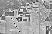 | The asphalt (dark black) runway and the dirt (white) runway of Beaver Municipal Airport (left). |