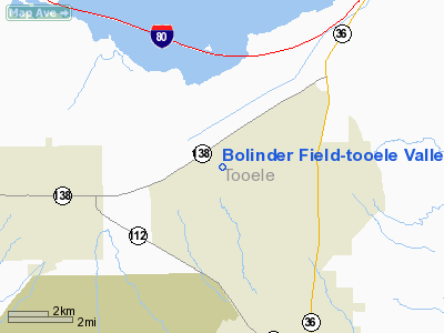 Bolinder Field-Tooele Valley Airport covers an area of 612 acres (248 ha) at an elevation of 4,322 feet (1,317 m) above mean sea level. It has one runway designated 17/35 with an asphalt surface measuring 6,100 by 100 feet (1,859 x 30 m).
