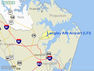 Langley Air Force Base (IATA: LFI, ICAO: KLFI, FAA LID: LFI) is located three nautical miles (6 km) north of the central business district of the city of Hampton, Virginia, United States. In January 2010, Langley realigned with Fort Eustis in Newport News, Virginia to become Joint Base Langley-Eustis. Langley is the home of the United States Air Force's 633d Air Base Wing (633 ABW), 1st Fighter Wing (1 FW) and the 480th Intelligence Surveillance and Reconnaissance Wing (480 ISRW). It also hosts the Global Cyberspace Integration Center field operating agency, the 192D Fighter Wing of the Virginia Air National Guard and Headquarters Air Combat Command (ACC). The base is one of the oldest facilities of the Air Force, being established on Dec. 30, 1916, prior to America's entry to World War I by the Army Air Service, named for aviation pioneer Samuel Pierpont Langley. It was used during World War I as a flying field; balloon station; observers’school; photography school; experimental engineering department, and for aerial coast defense. 633d Air Base WingThe 633d Air Base Wing (633 ABW) is the host at Langley AFB. Beginning in late January 2010, the 633 ABW will serve as the support unit for Joint Base Langley-Eustis, the realignment consolidation of Langley AFB and Fort Eustis as directed by BRAC 2005. Originally designated the 633d Combat Support Group, the 633d Air Base Wing was established and activated Mar. 14, 1966 and organized April 8, 1966. It was originally assigned to the 13th Air Force as part of Pacific Air Forces (PACAF) at Pleiku Air Base 62, South Vietnam, and later at Andersen AFB, Guam. During the Vietnam War, Airmen of the 633 ABW participated in numerous campaigns, air offensives and Operations Arc Light, Bullet Shot and Linebacker. On Oct. 1, 1989, the Wing aligned under the 13th AF, activated on Andersen AFB and became the host unit, providing services for various tenant units. This marked the transfer of Andersen AFB control from Strategic Air Command to PACAF. In August 1990, 633 ABW personnel began shipping more than 37,000 tons of munitions to forces in the Persian Gulf during Operations Desert Shield and Desert Storm - more than 30,000 tons went by sealift, and more than 2,200 troops and 2,200 tons of cargo processed aboard 200 aircraft. Operation Fiery Vigil spun into action June 1991, when 633 ABW personnel cared for more than 20,000 American evacuees and 1,100 pets following the eruption of Mount Pinatubo, Philippines. On Oct. 1, 1994, the 633 ABW was inactivated and the 36th ABW was activated in keeping with the policy of the Air Force Chief of Staff to maintain the most highly decorated and longest-serving Air Force units on active-duty. On Jan. 7, 2010, the 9th Air Force reactivated the 633 ABW and declared it to be the host unit for Langley AFB, Va. 1st Fighter WingThe 1st Fighter Wing, under various designations, was the host unit at Langley from June 30, 1975 until Jan. 7, 2010, when it was relieved of host unit duties by the newly re-activated 633d Air Base Wing. Fighter squadrons of the 1st Fighter Wing's Operations Group are:
