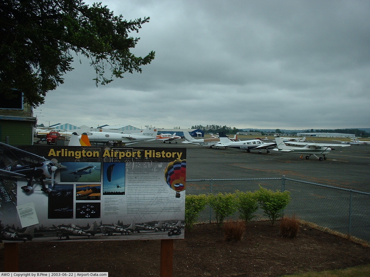 Plan view of Arlington Municipal Airport with boundaries outlined in red Arlington Municipal Airport (ICAO: KAWO, FAA LID: AWO) is a public airport located three miles (5 km) southwest of the central business district of Arlington, a city in Snohomish County, Washington, United States. It is owned and operated by the City of Arlington. History