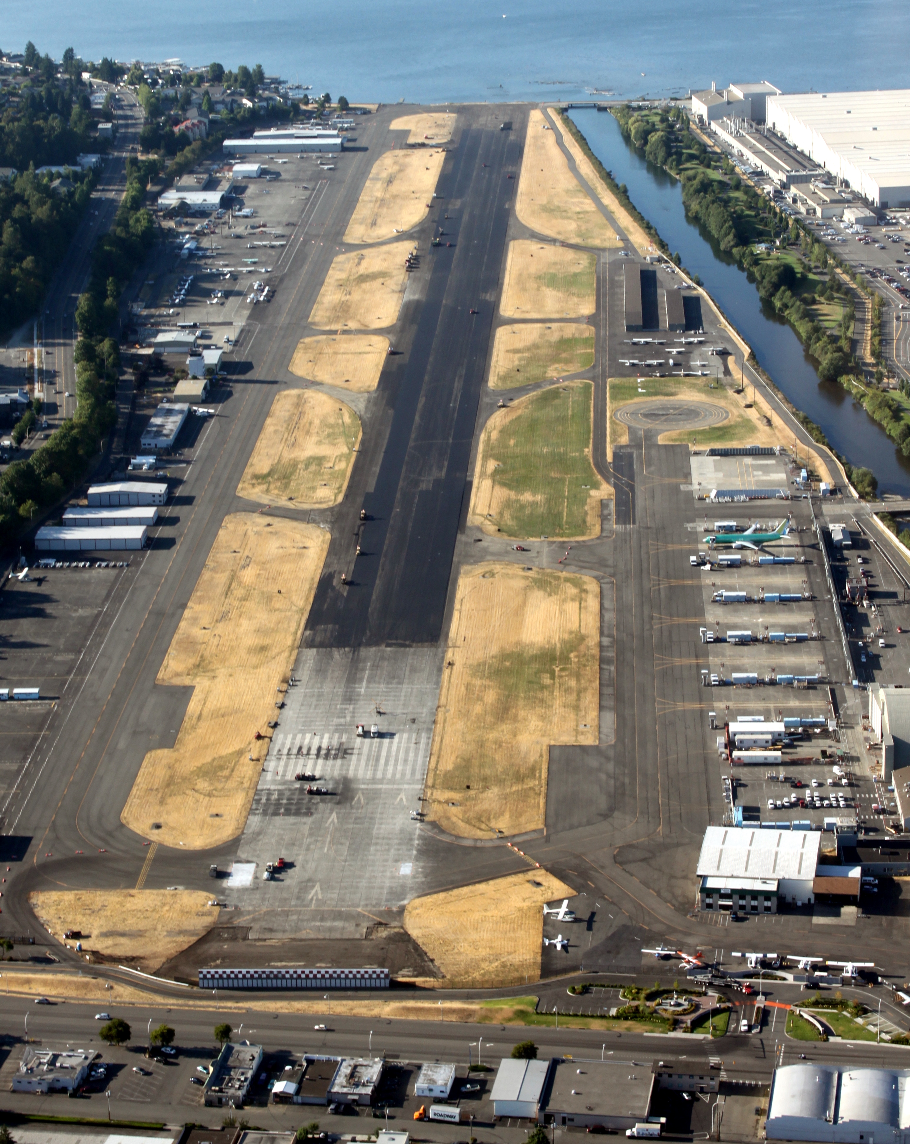 | Renton Airport during a runway resurfacing project in August of 2009 |